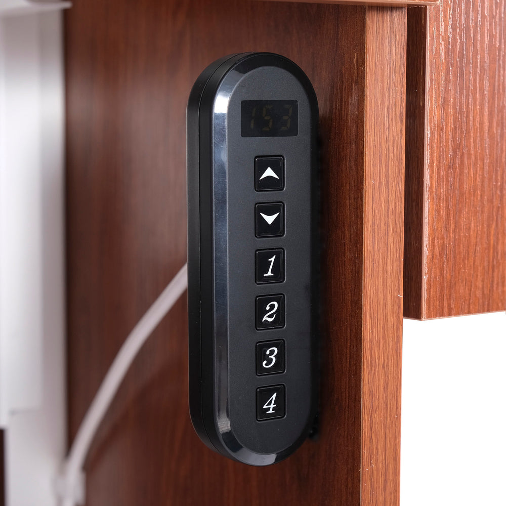 The Kangaroo & Joey Electric Cabinet features a smooth and sturdy dual rail electric lift, providing effortless height adjustments for your sewing machine. Designed for convenience, it comes with a remote control and an intuitive control board that allows you to program up to four different height settings. Whether you need a flat sewing surface, free-arm positioning, or storage mode, this advanced lift system adapts to your needs with just the push of a button. The electric cabinet can accommodate machines weighing up to 65 pounds. (Please note: Photos and videos are for demonstration purposes only. The sewing machine shown may not be compatible with this specific cabinet model.)