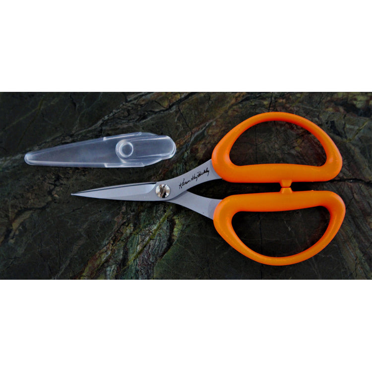 Karen Kay Buckley's Perfect Scissors feature stainless steel, knife-edge blades and a comfortable ergonomic grip. The Perfect Scissors are ideal for cutting templates, fabric, and fabric with fusible stabilizers. Both right and left-handed people can use Karen Kay Buckley's Perfect Scissors. Included with each pair of Perfect Scissors is a plastic cover. Blade size is approximately 1-3/4".