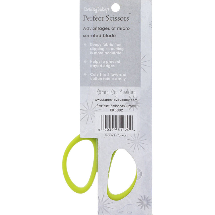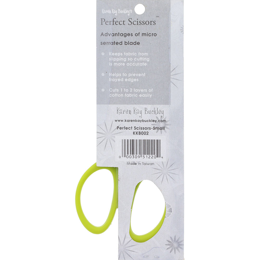 Micro-serrated blade keeps the fabric from slipping, so cutting is more accurate. This special blades pull the material into the scissors rather than pushing it away like traditional scissors. These 4" scissors are great for right- and left-handed people and have cushioned handles for extended use. Use Karen Kay Buckley's Perfect Scissors for detail cutting on curves and points. Also included is a protective plastic cover to protect your blades.