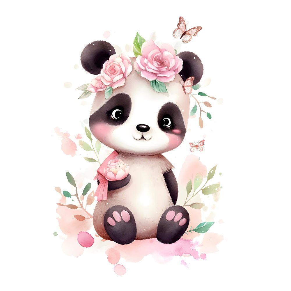 Kawaii Nursery Baby Panda Fabric Panel Details