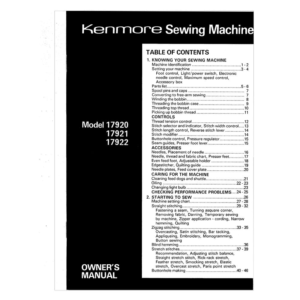 Kenmore 158.17921 Models Sewing Machine Instruction Manual (Model 158.17921/17920/17922) - 48 Pages. Lost your sewing machine's manual? We've got you covered! This instruction manual is the ultimate guide to unlock the full potential of your Kenmore 158.17921 Models. No more confusion or frustration—just clear, concise instructions right at your fingertips. What's inside? Everything you need to know from setting up to mastering your sewing machine and all its features.