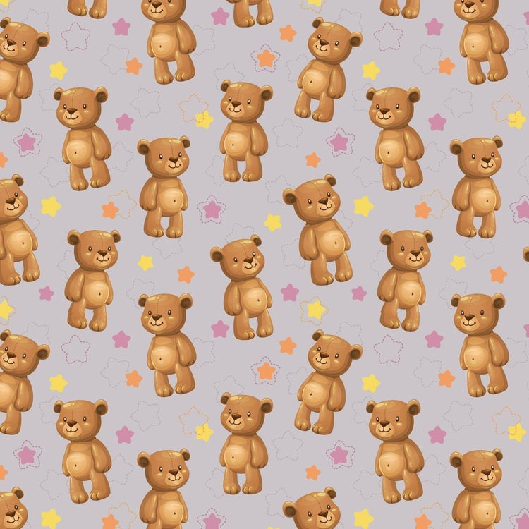 Kid’s Playtime, Teddy Bear & Stars Fabric - Grey Details