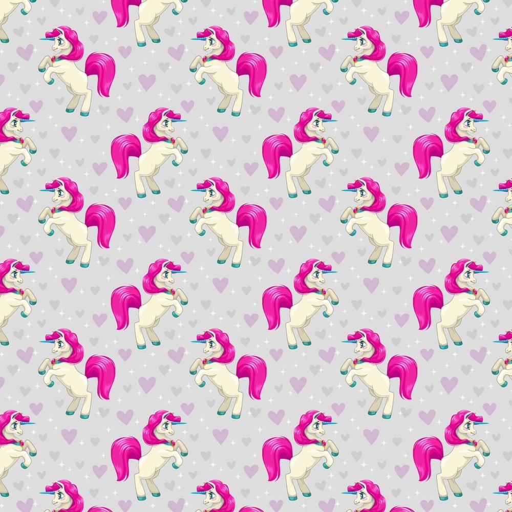 Kid's Playtime, Cartoon Fairy Unicorn & Hearts Fabric - Pink Details