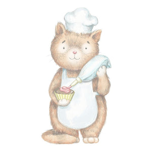 The Kitten Icing A Cupcake In The Kitchen Fabric Panel is part of the Kitten In The Kitchen Fabric Collection printed by Sewing Parts Online. Digitally Printed on 100% cotton. This panel is available in 6 different sizes:
