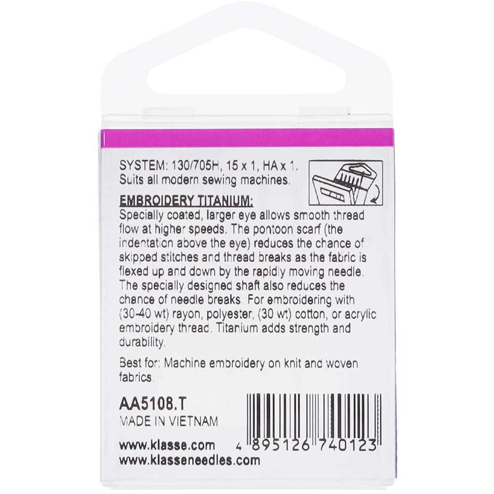 Titanium Embroidery Needles, Klasse (4pk), Size 80/12 Details