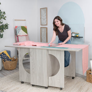 The Koala Cutting Table is the ultimate workspace upgrade for any sewist, quilter, or crafter looking to combine efficiency with elegance. Designed by sewists, for sewists, this versatile table provides a generous surface for cutting fabric, piecing quilt tops, or assembling projects with precision and comfort. When not in use, the double-sided surface extensions fold down neatly, allowing the table to fit beautifully in smaller studios without sacrificing workspace when you need it most.