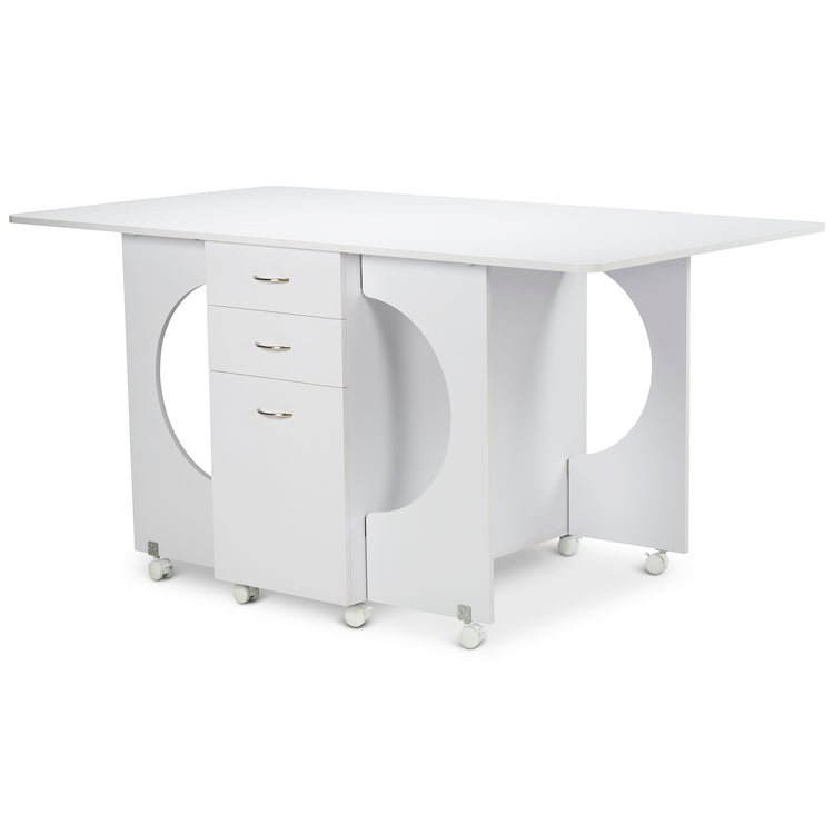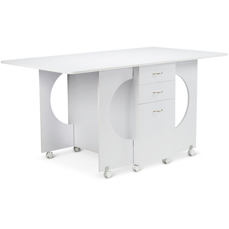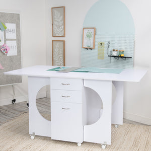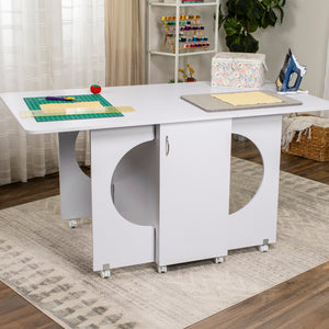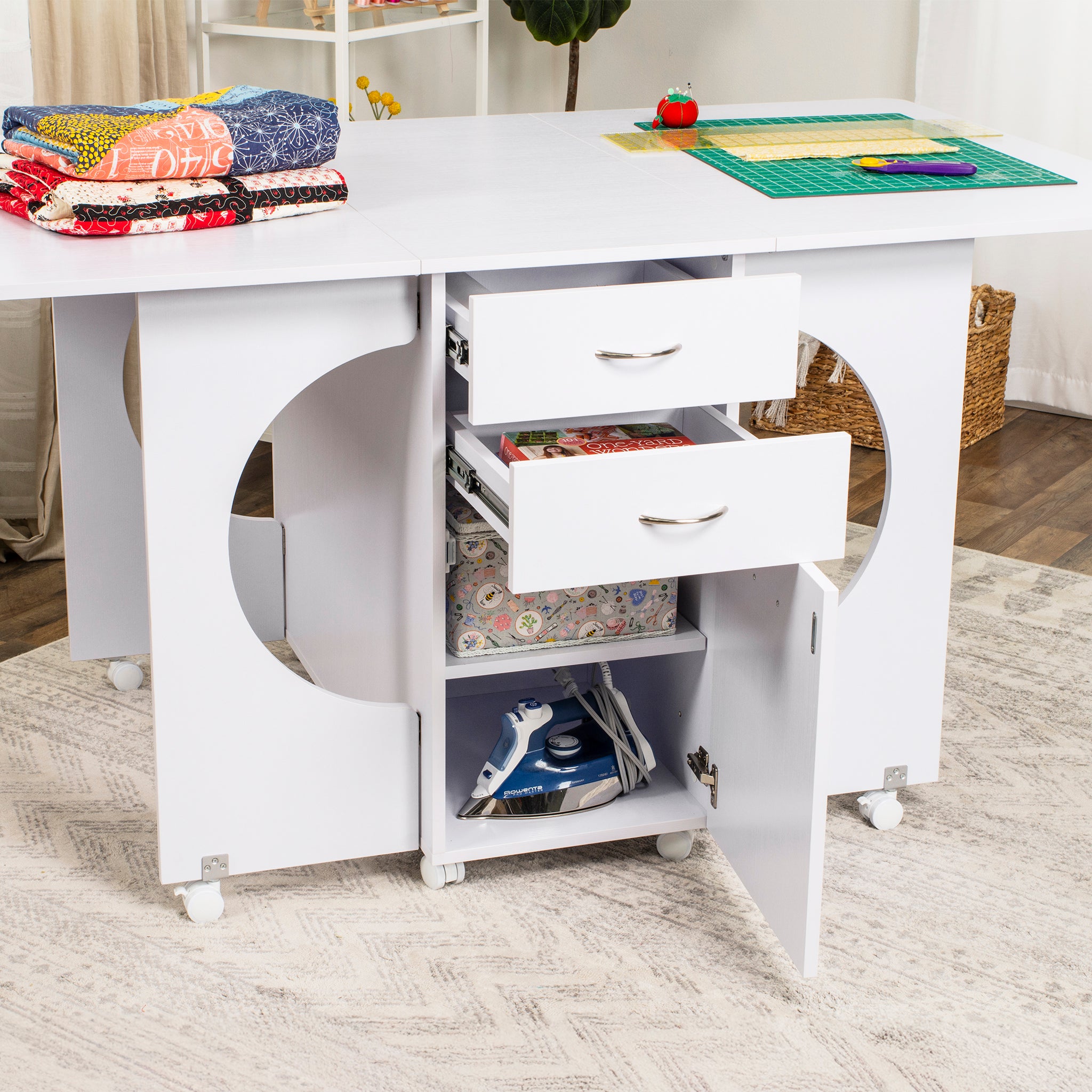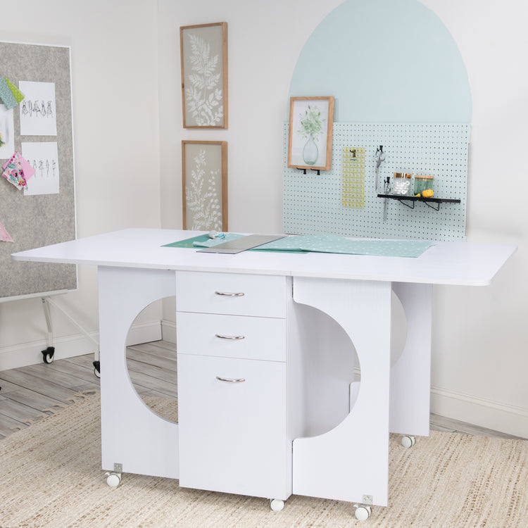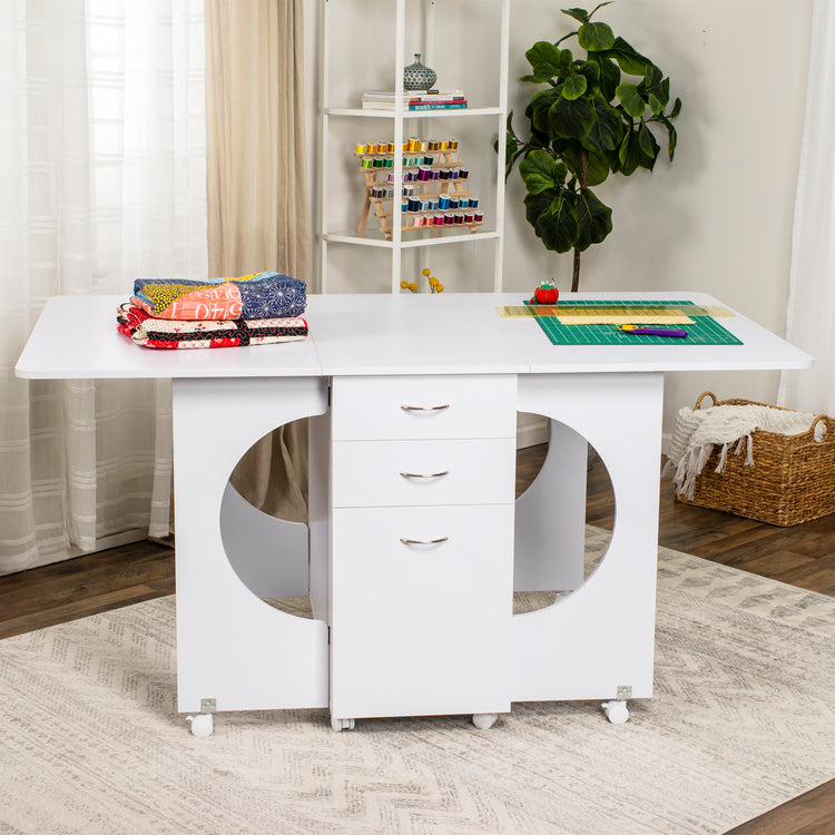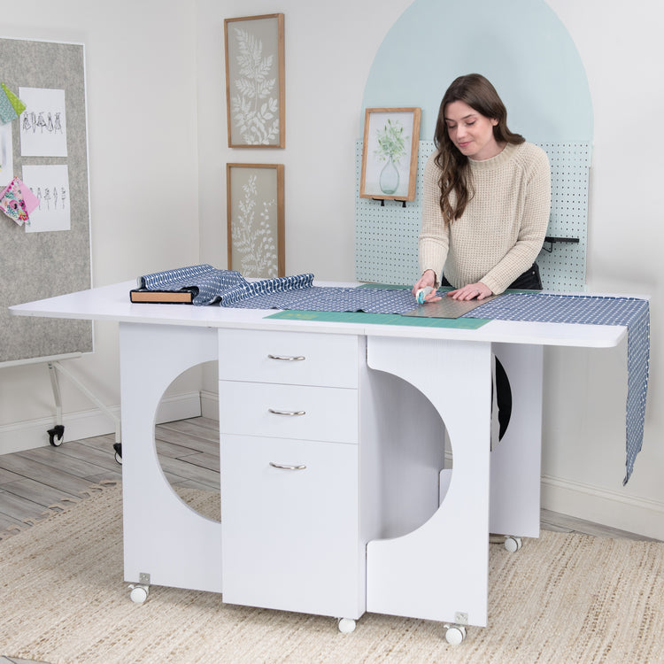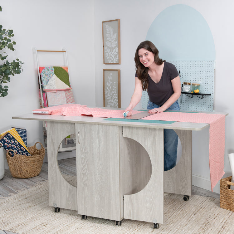 When you’re done, simply fold the extensions down to transform the table into a sleek, compact piece that fits neatly into any room. Each surface is designed for stability and smoothness, giving you a reliable foundation for precise cutting and crafting. Whether you’re working on small piecing projects or full quilt tops, the expandable workspace ensures you always have the room you need to create with ease.