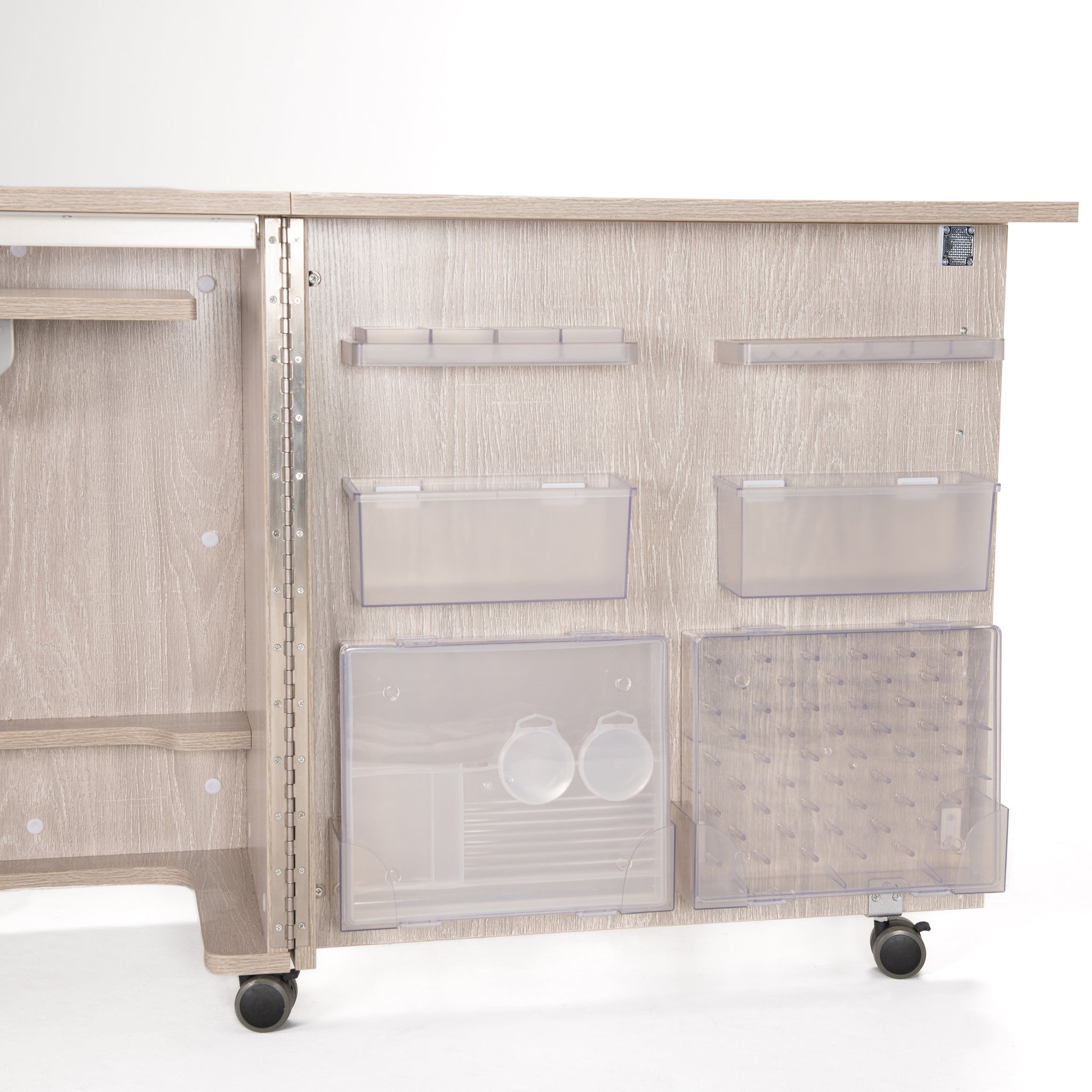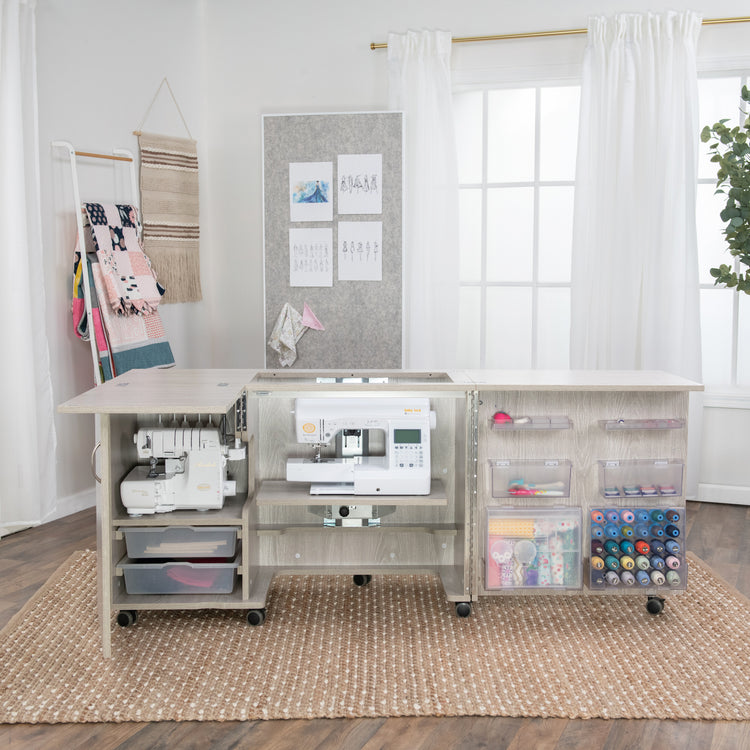 Choose a finish that complements your creative space with the Koala Eclipse’s elegant finish options — English White Ash or Grey Oak. Each finish is crafted with care to enhance both the beauty and durability of your sewing cabinet.