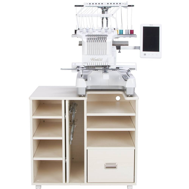 The Embroidery Center Pro is designed to accommodate the Baby Lock and Brother professional 6-10 multi-needle embroidery machines. Please specify your machine when ordering. For example, the Baby Lock Alliance and Brother PRS100 require a different top and must be noted when ordering.