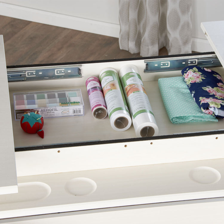 You can never have too much work surface when you're sewing, crafting, or quilting! Koala took this into account when designing this piece of furniture. The piece comes with two extension panels, which extend the work surface from the standard 45-inch width to the full 75-inch width.