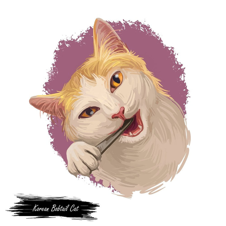 Korean Bobtail Cat Portrait Fabric Panel