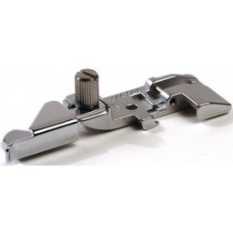 The lace application foot is used to serge the finest lace and delicate trims without damaging the header of the trim. The adjustable guide ensures your serging is accurate and the lace stays intact.