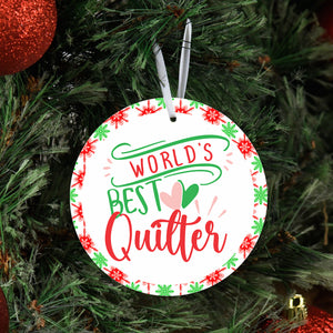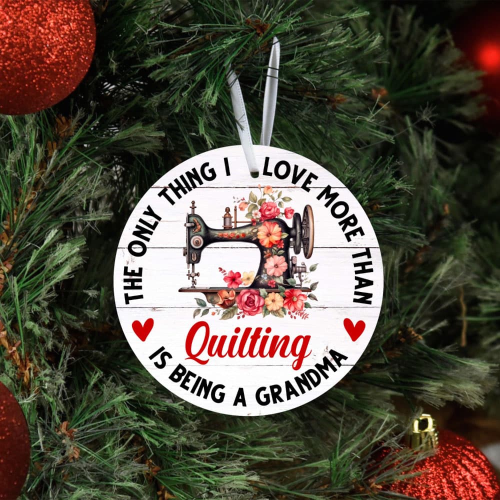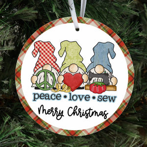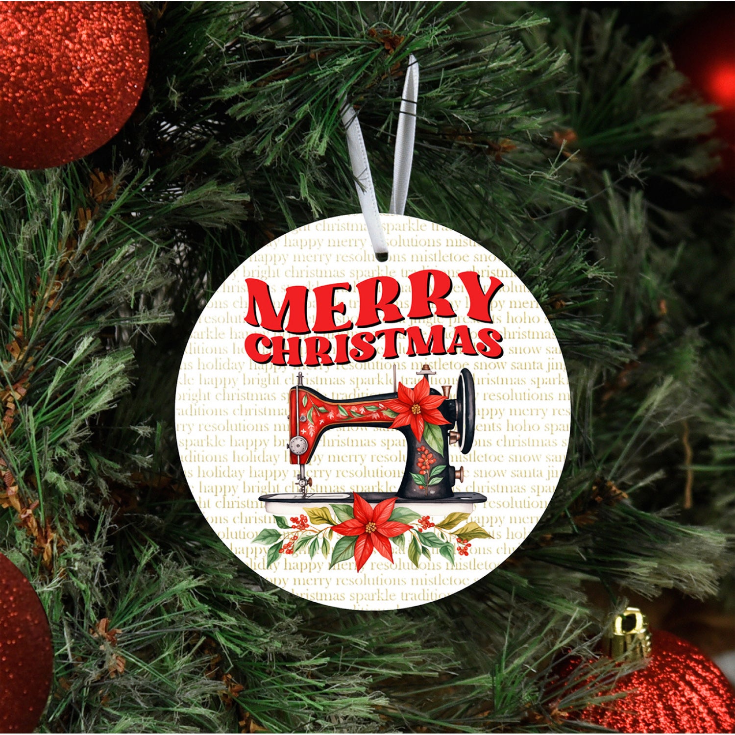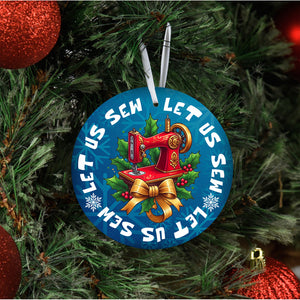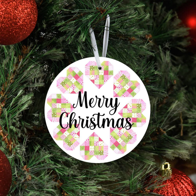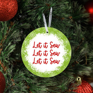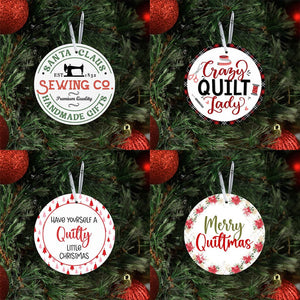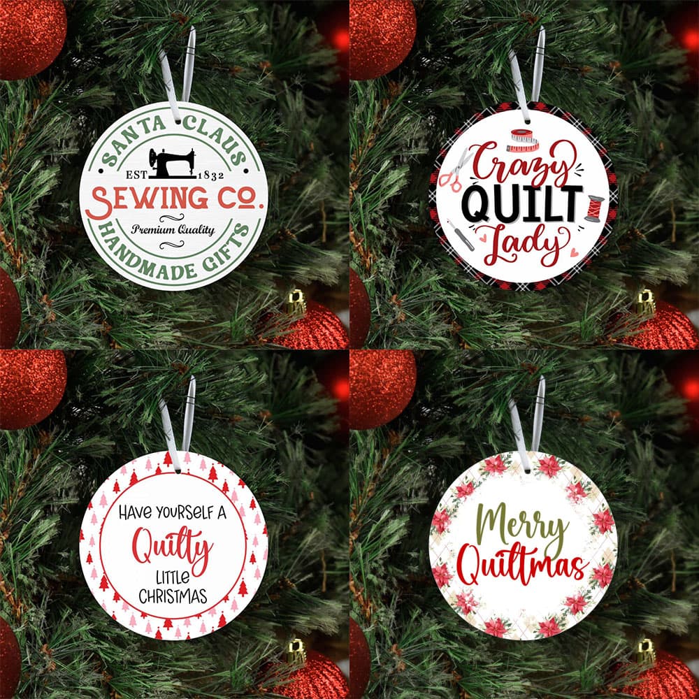 The Lake & Laser Ornaments measure 3.5" in diameter, displaying the same design on both sides. These adorable aluminum ornaments have a smooth gloss finish, are protected from damaging UV rays, and are practically scratch-resistant. The Lake & Laser Ornaments make perfect holiday gifts or stocking stuffers for the sewists you love! Please note ribbon colors may vary.