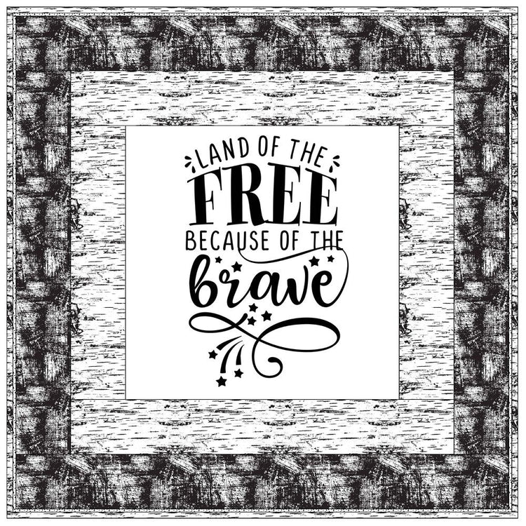 The Land of the Free Wall Hanging includes everything that you need to make the quilt - the instructions and a total of 3 1/2 yards of fabric and a 23" panel. It has two borders and is finished with a flange binding. Batting is sold separately. The finished size of this quilt is 42" x 42".