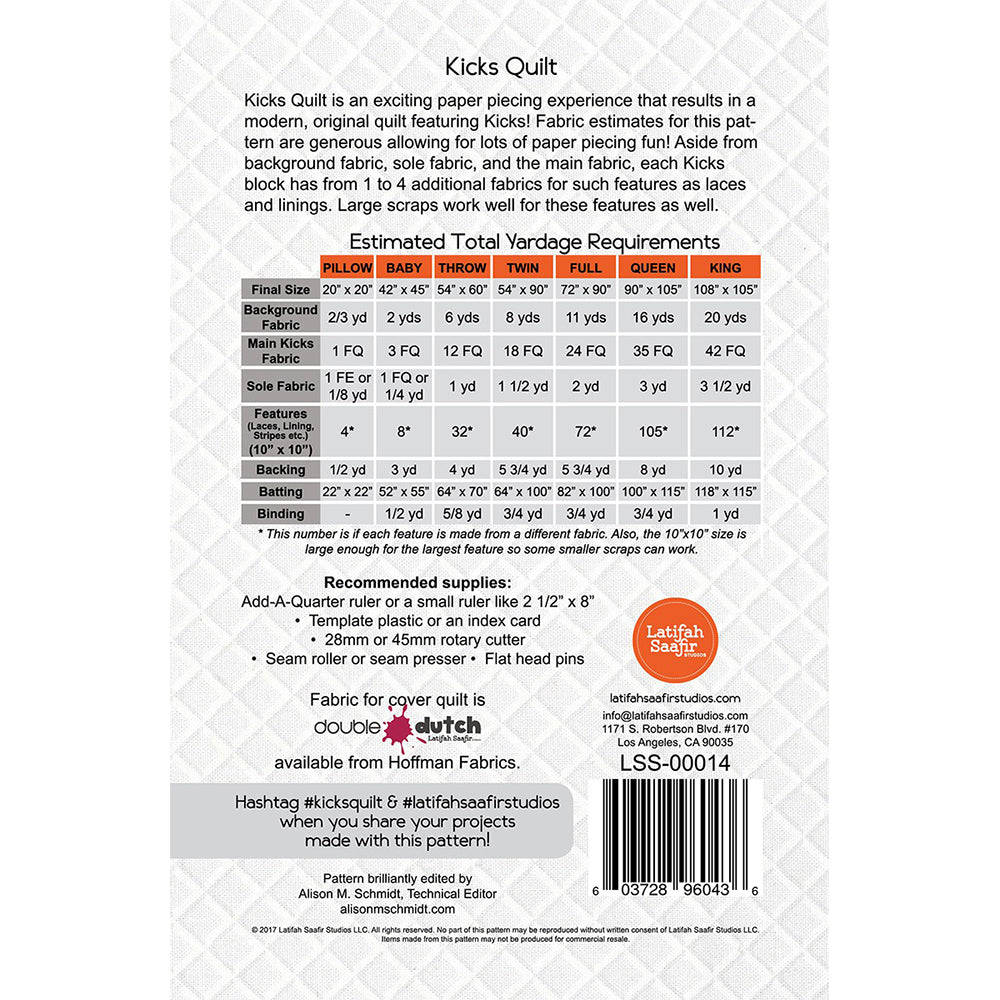 Latifah Saafir, Kicks Quilt Pattern Details