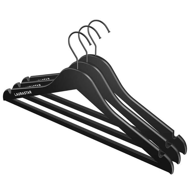 Organize your wardrobe with Laurastar's innovative hangers! These hangers feature a matte-black hook, a soft-touch modern design, and a non-slip coating keeping even your most delicate items from slipping or becoming distorted.