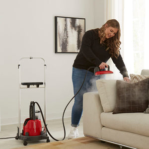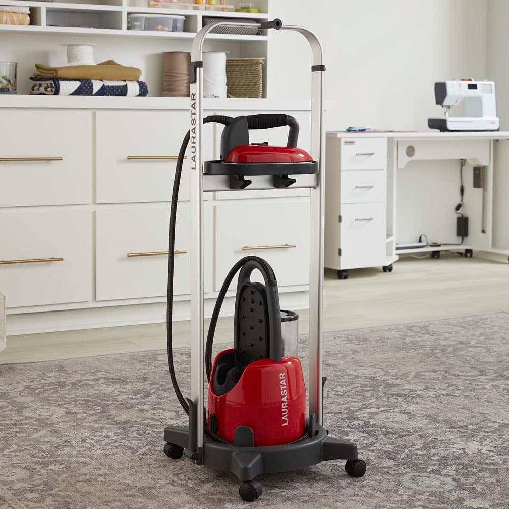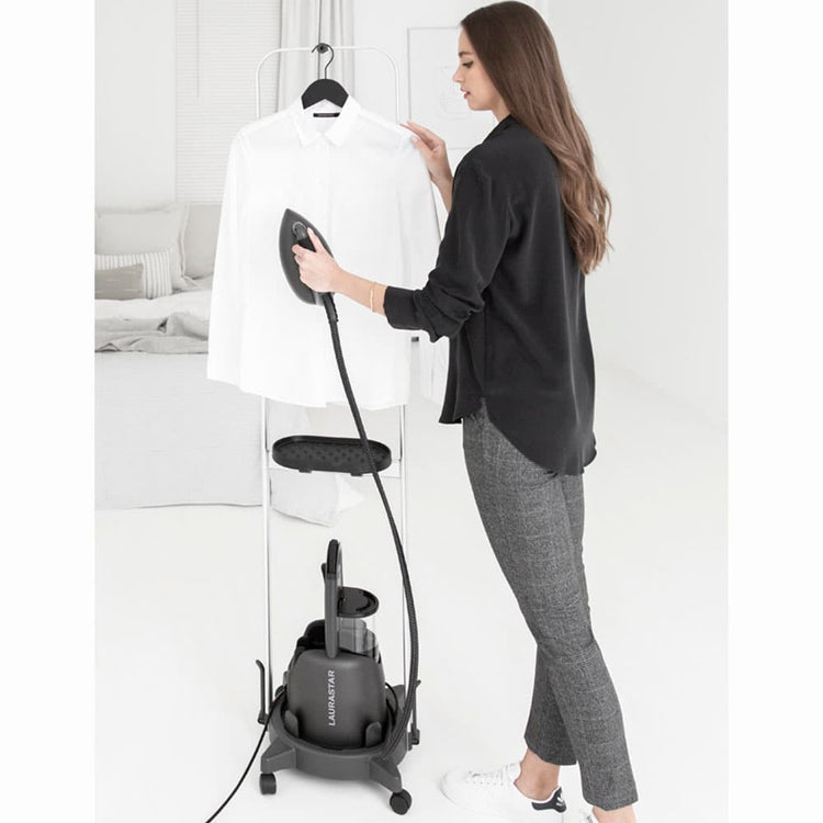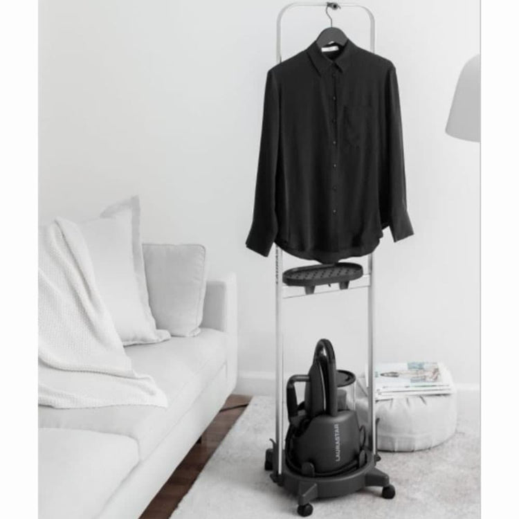 The Laurastar Lift Steam Cart perfectly pairs with the Laurastar Lift Portable Steam Stations! This ingenious invention offers superior stability while smoothing out your clothes, a height-adjustable bar for comfort, and four wheels for maximum mobility. The Laurastar Lift Steam Cart is foldable, saving space when not in use.