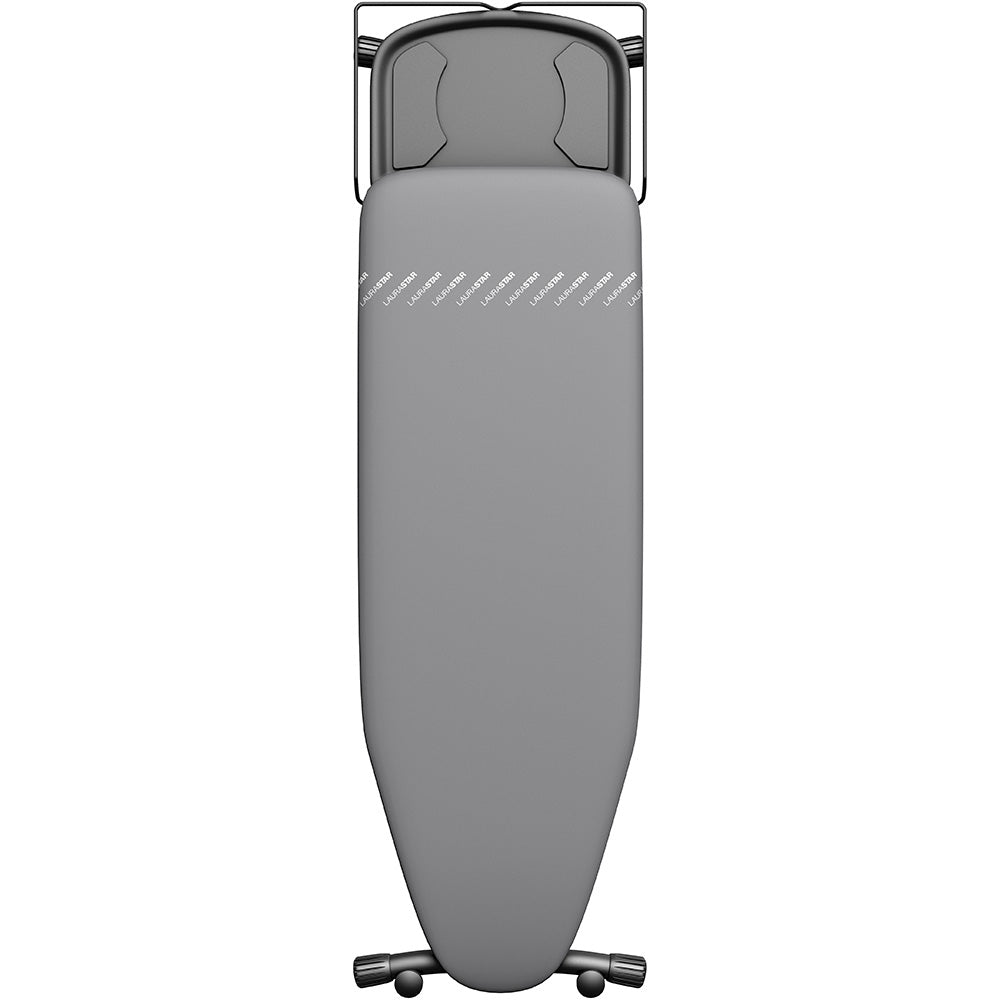 The Laurastar PlusBoard is lightweight and easy to move with its four integrated wheels. The sleek and modern design features a large ergonomic work surface that provides ample space for ironing. The Laurastar PlusBoard is composed of 100% cotton and 100% polyester foam padding, equipped with a convenient iron rest and a dark grey Laurastar quality cover.