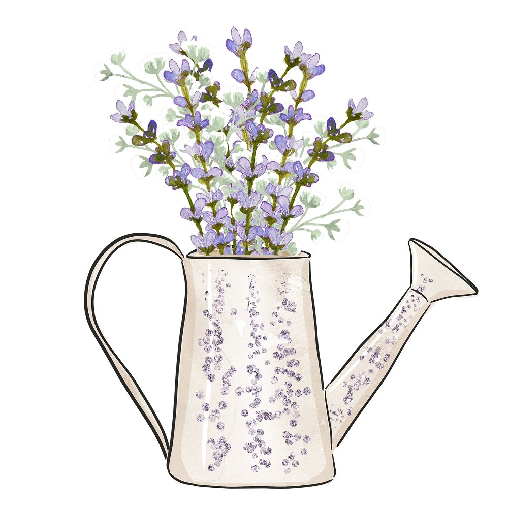 Lavender Bouquet in Watering Pot Fabric Panel Details