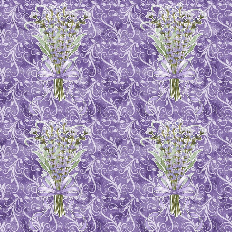 Lavender Bouquet on Vines Fabric - Purple