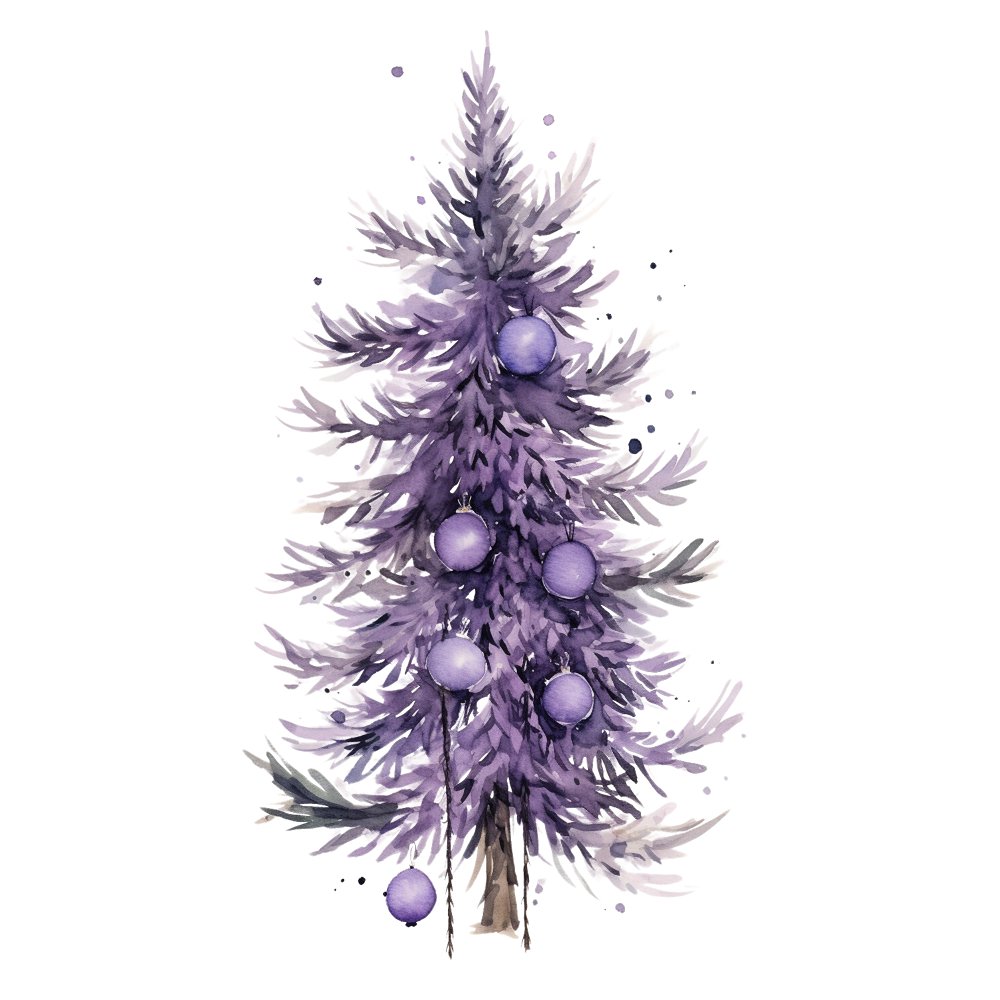 Lavender Christmas Tree & Ornaments #3 Fabric Panel