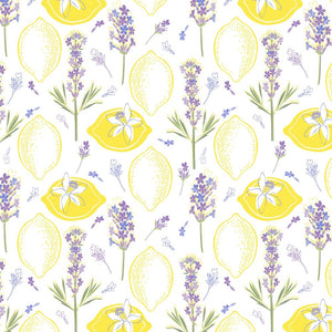 The Lemons With Lavender Garnishes Fabric is a part of the Lovely Lavender & Lemons Fabric Collection printed by Sew Creative Fabrics. Digitally Printed on 100% cotton and measures 42-43" wide.