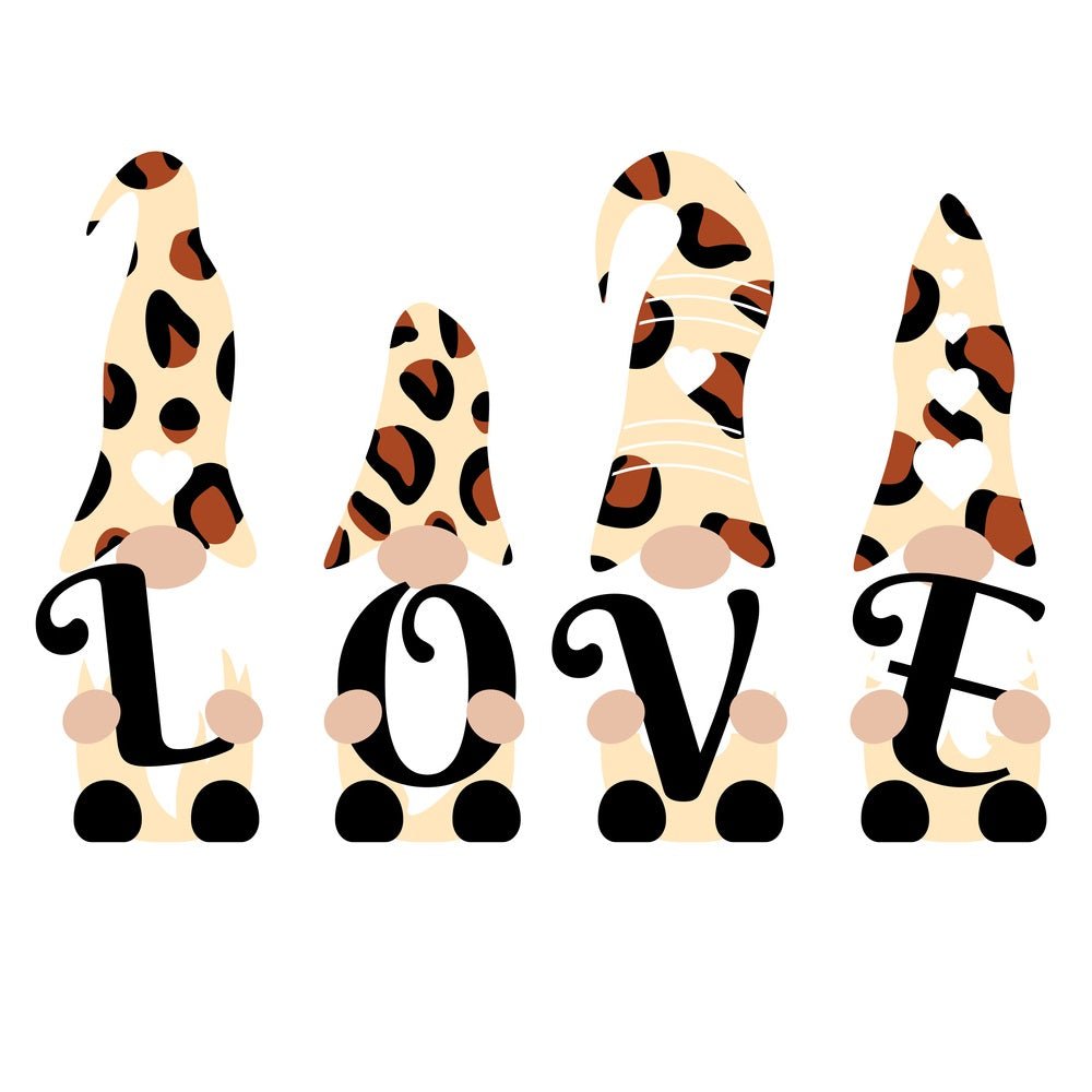 Leopard Print Gnomes Holding Love Fabric Panel Details