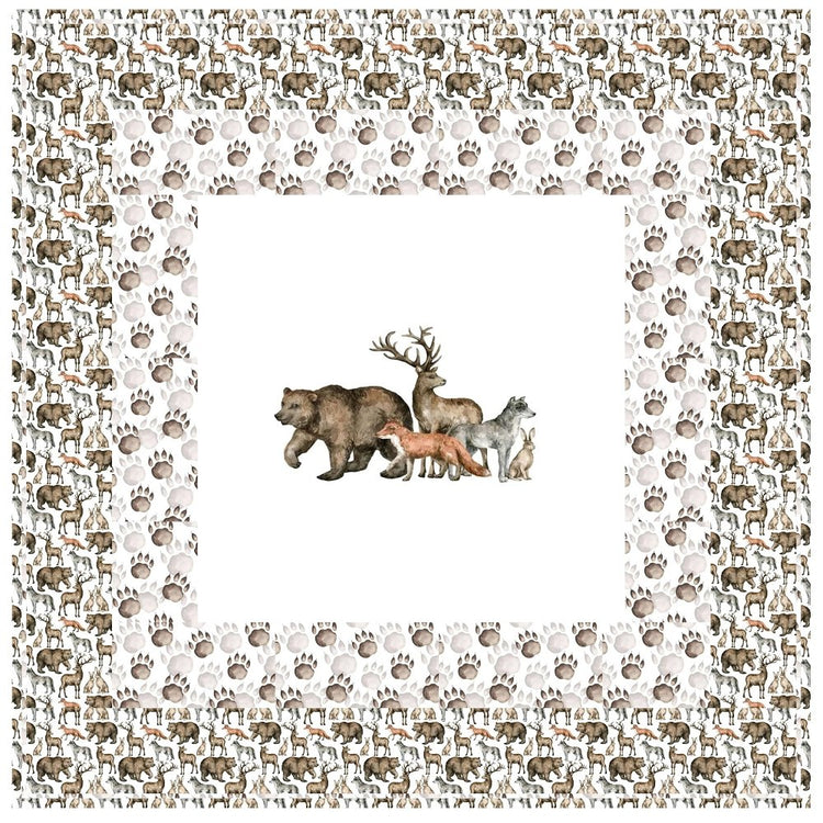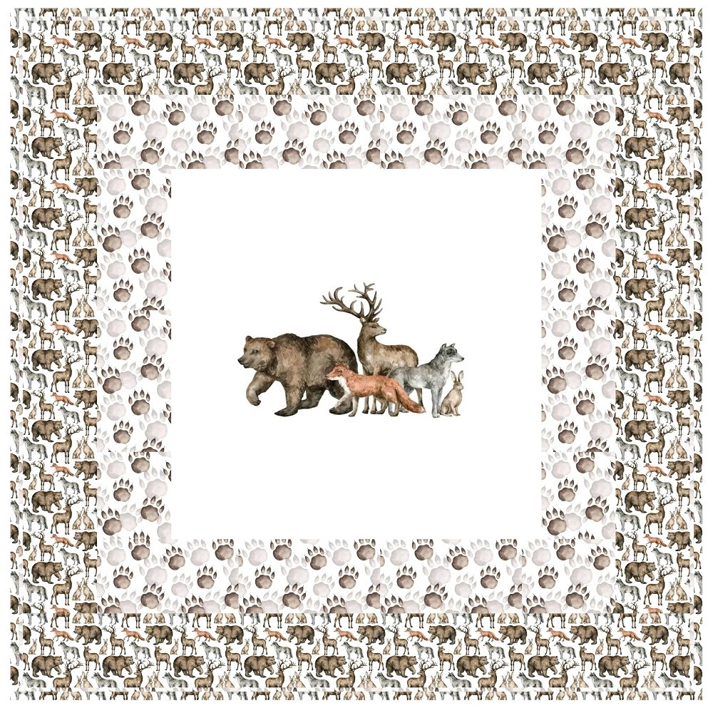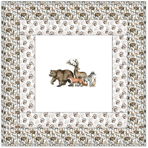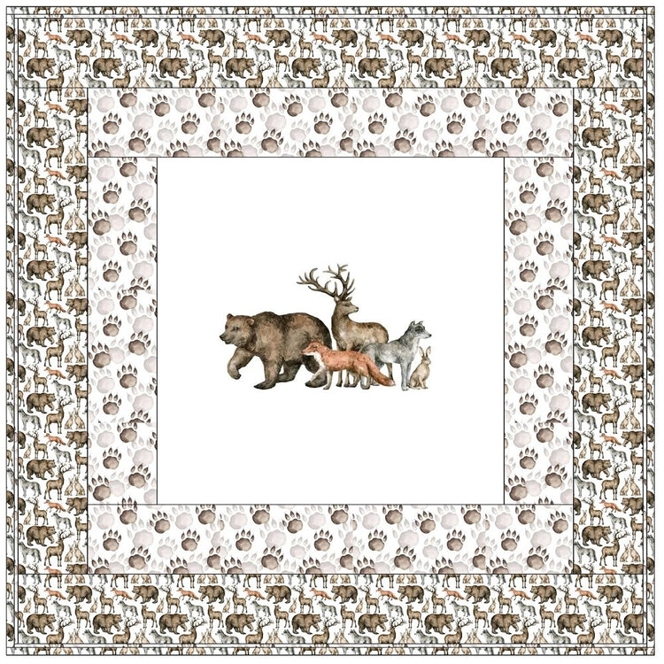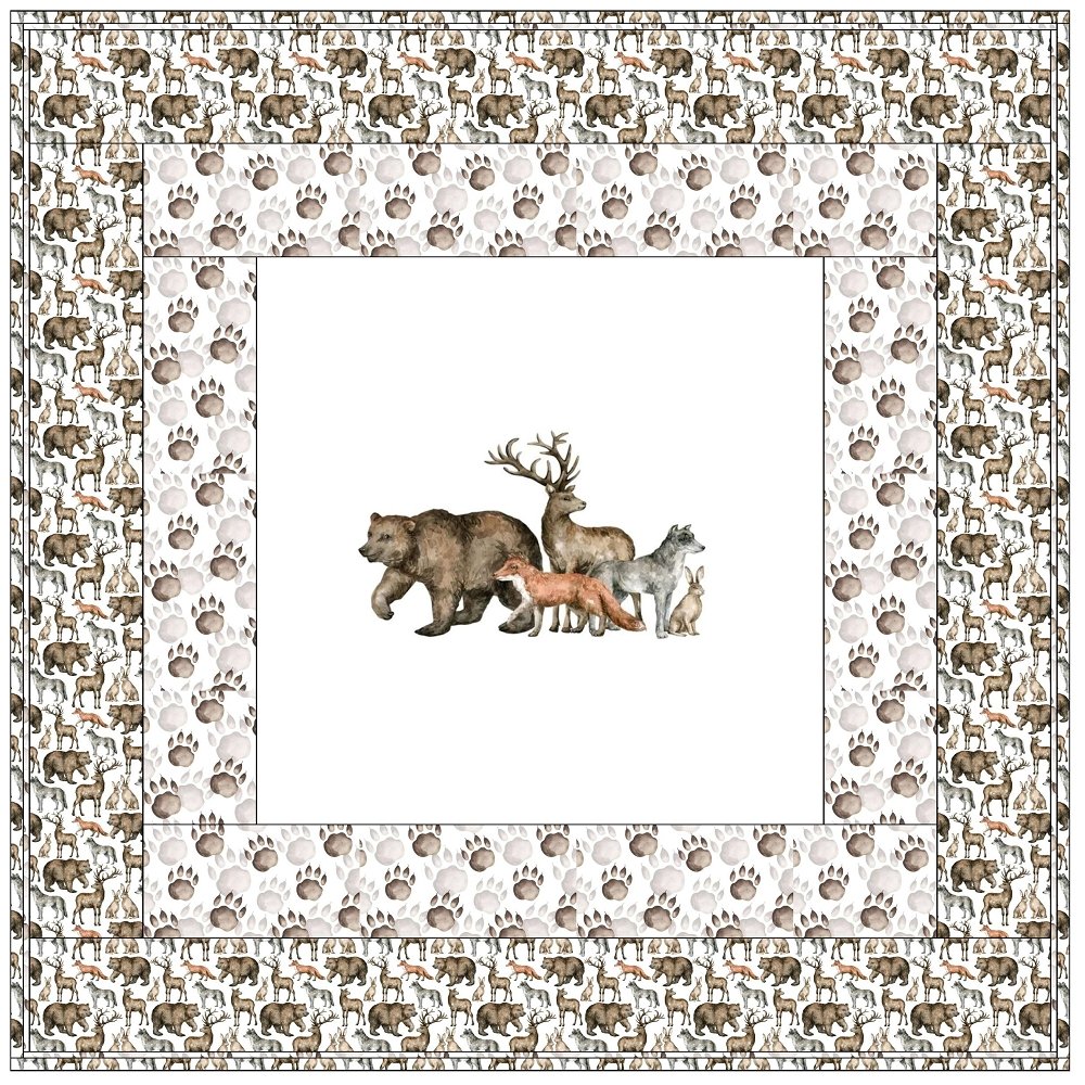 The Life In The Wild 1 Wall Hanging includes everything that you need to make the quilt - the instructions and a total of 3 1/2 yards of fabric and a 23" panel. It has two borders and is finished with a flange binding. Batting is sold separately. The finished size of this quilt is 42" x 42".