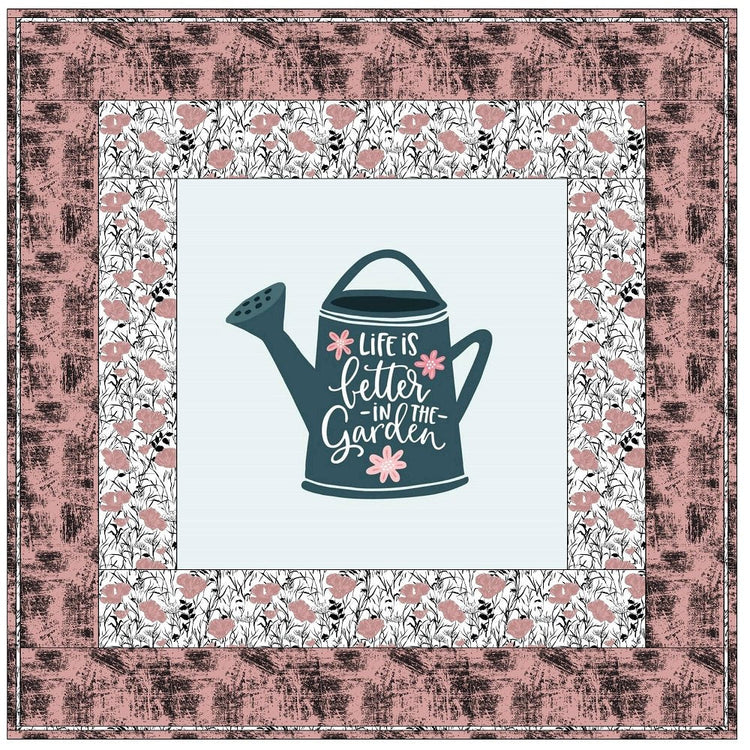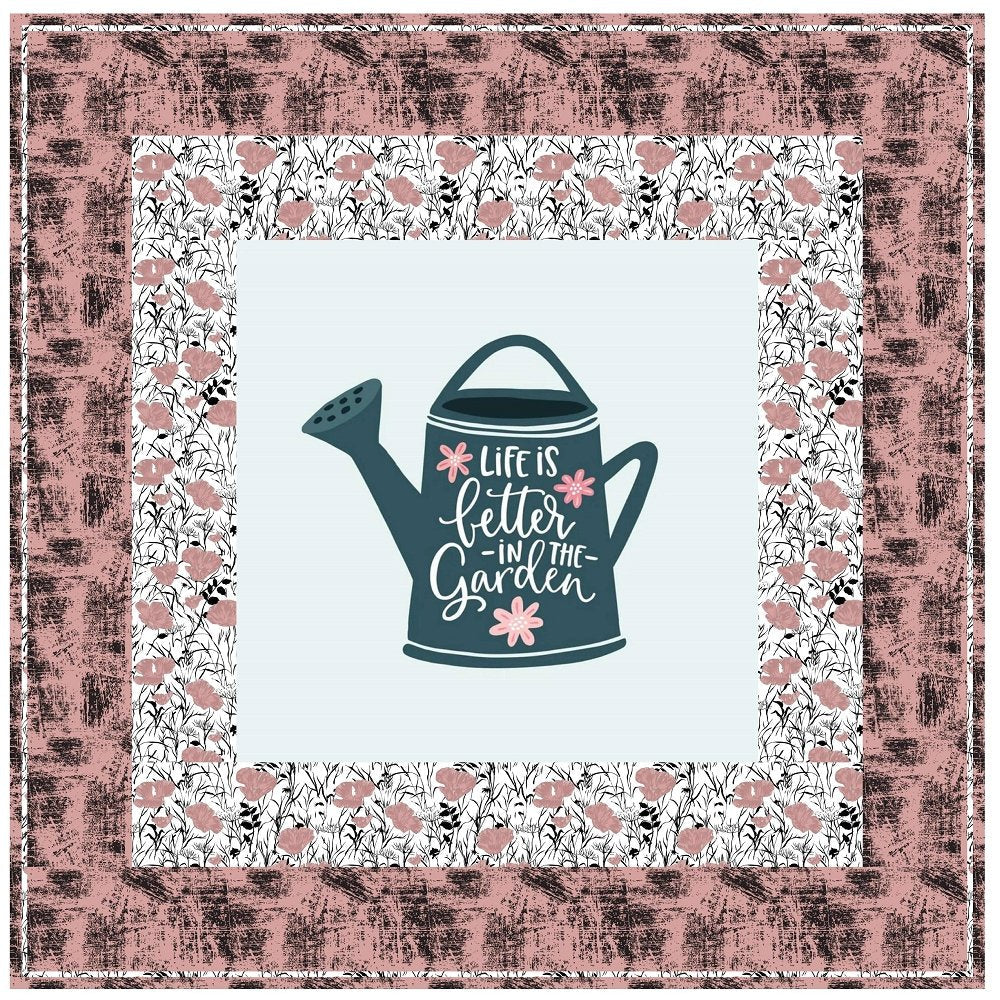 The Life is Better Wall Hanging includes everything that you need to make the quilt - the instructions and a total of 3 1/2 yards of fabric and a 23" panel. It has two borders and is finished with a flange binding. Batting is sold separately. The finished size of this quilt is 42" x 42".