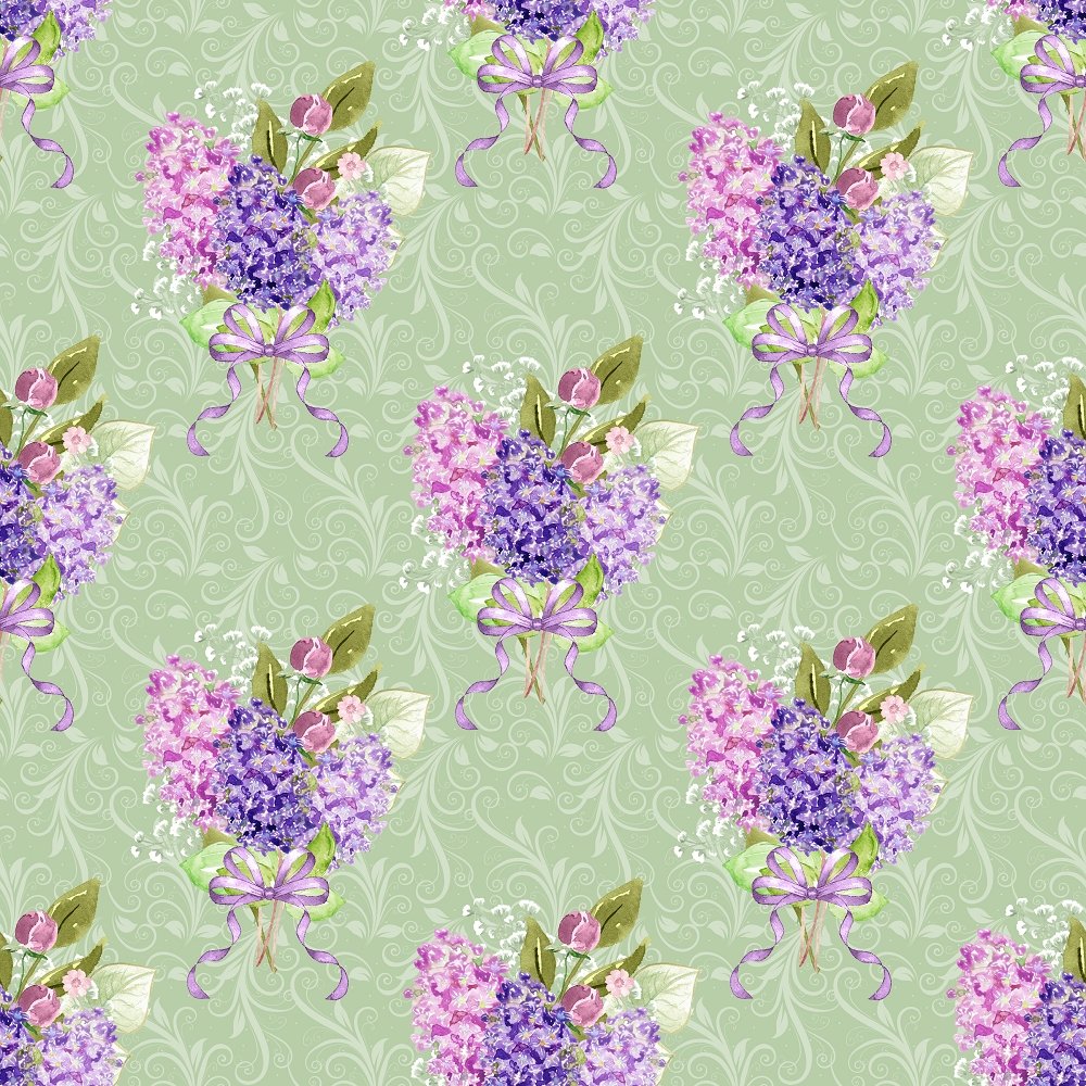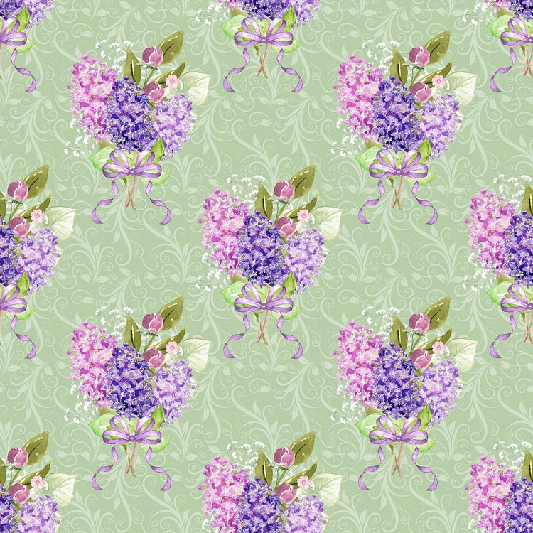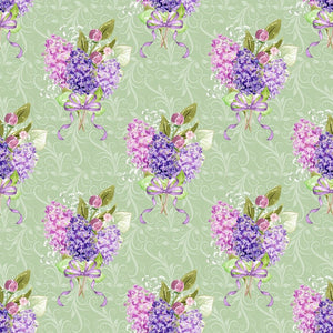 The Green Lilac Bouquets & Filigree Fabric is part of the Springtime Lilac Fabric Collection printed by Sew Creative Fabrics. Digitally Printed on 100% cotton and measures 43-44" wide.