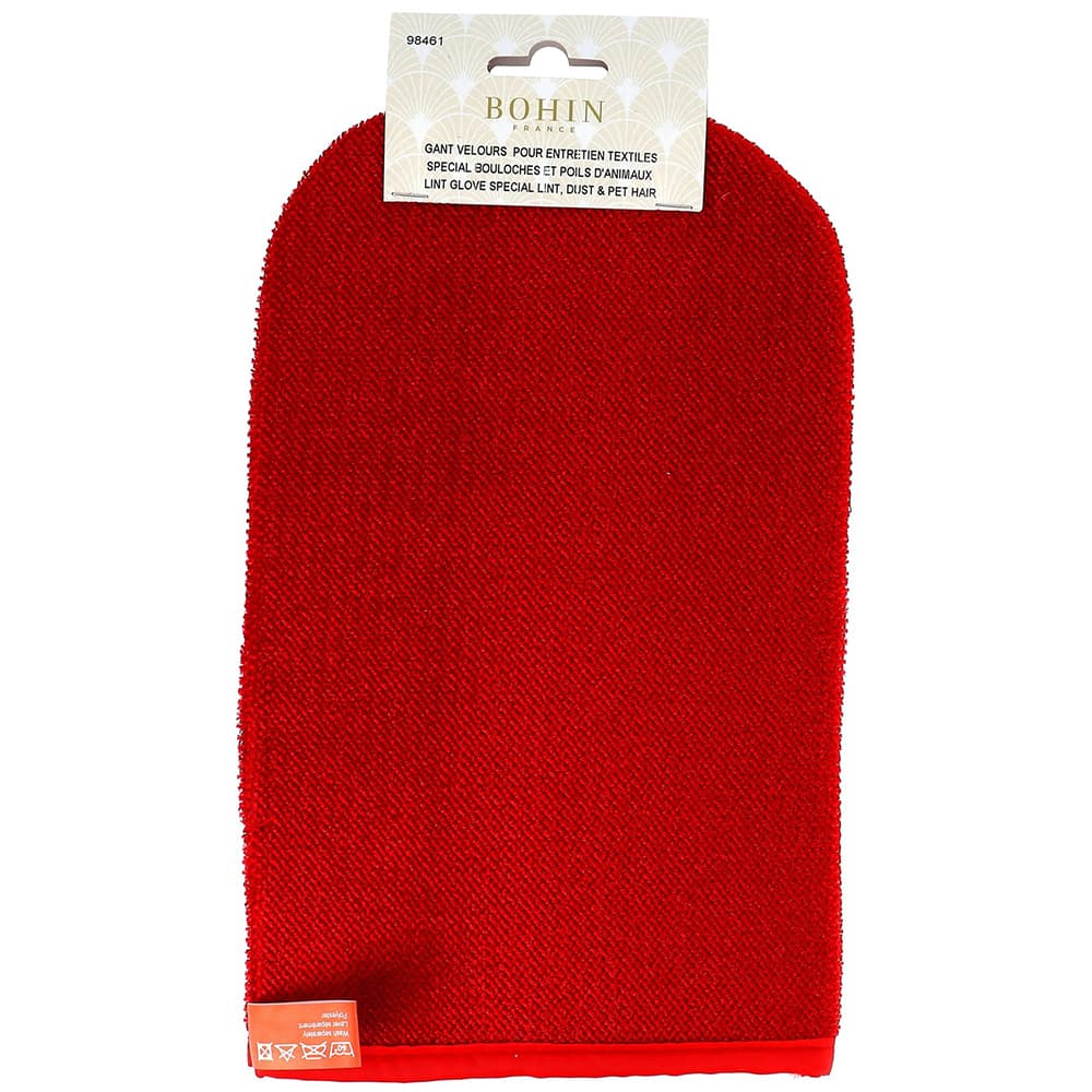 Bohin's Lint Mitt is a must-have tool for removing dust, lint, and pet hair from your sewing machine and quilting area. This large mitt measures 9-1/2in x 5-1/2. Dust from thread can build up on your sewing machine, serger, or longarm machine. With the Lint Mitt, you can keep your work area lint free. The Lint Mitt is washable up to 140 °F. Bohin's Lint Mitt also works well to remove chalk markings from fabrics.