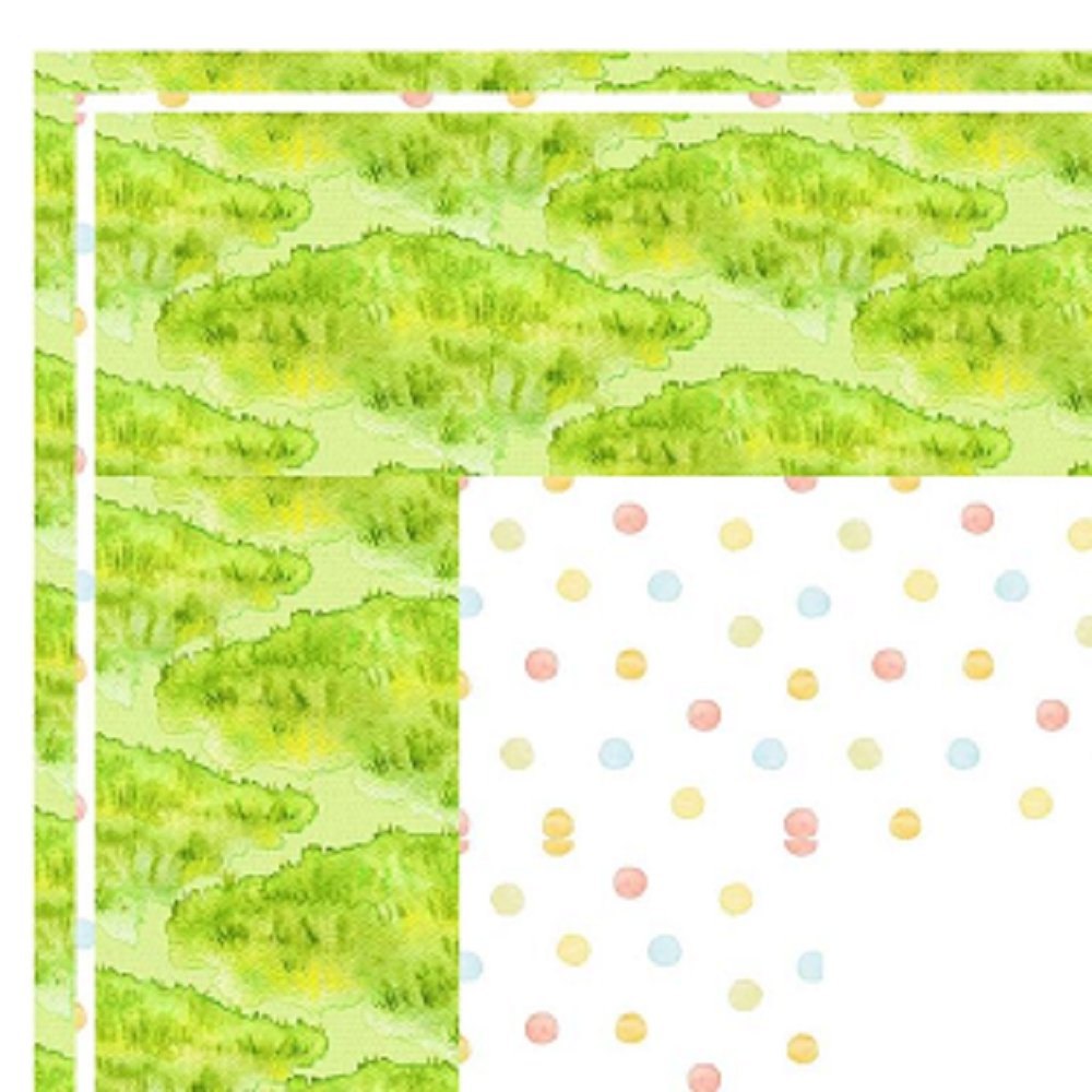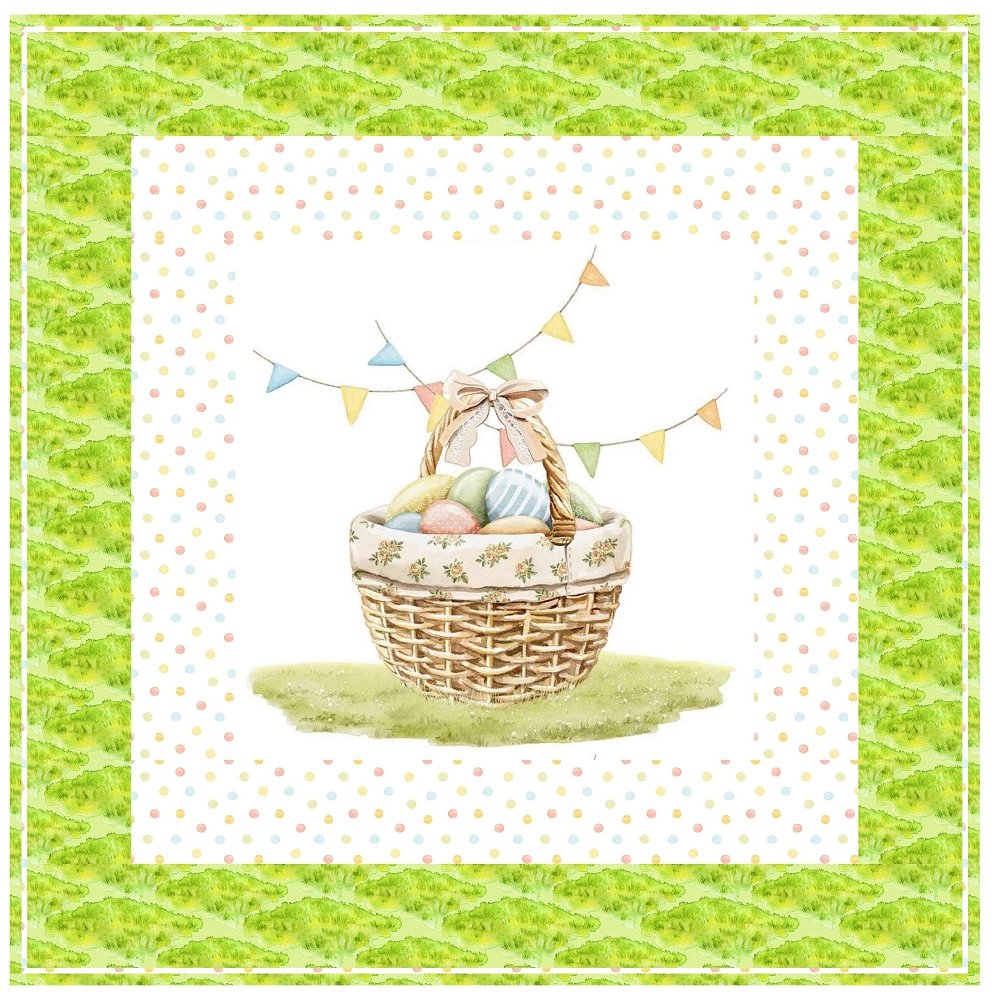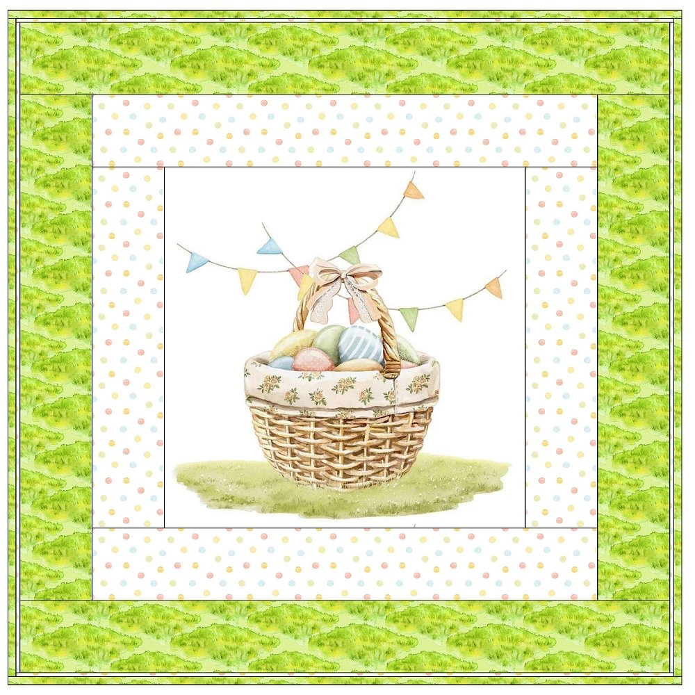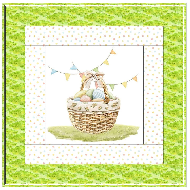 The Little Critter Easter Basket Wall Hanging includes everything that you need to make the quilt - the instructions and a total of 3 1/2 yards of fabric and a 23" panel. It has two borders and is finished with a flange binding. Batting is sold separately. The finished size of this quilt is 42" x 42".