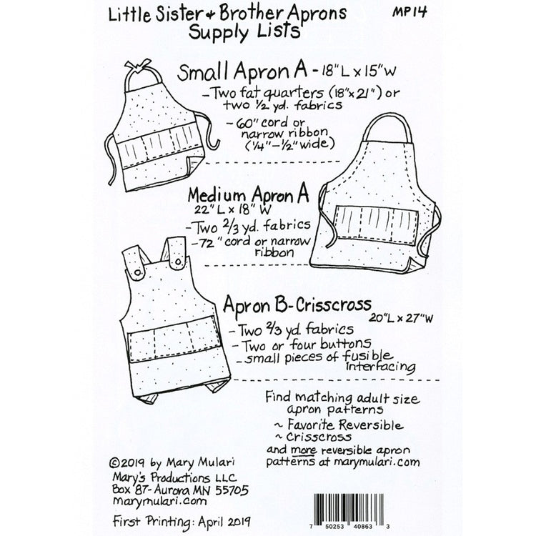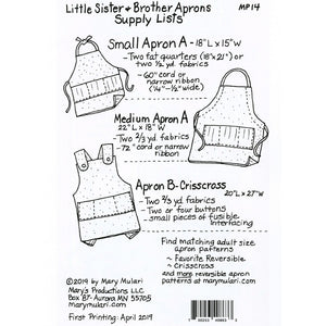 Little Sister and Brother Apron Pattern, Mary Mulari Designs