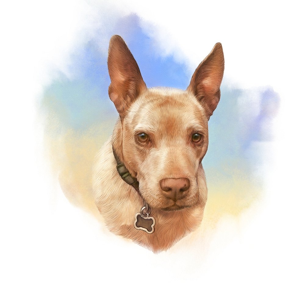 Long-Eared Red Dog Portrait Fabric Panel Details