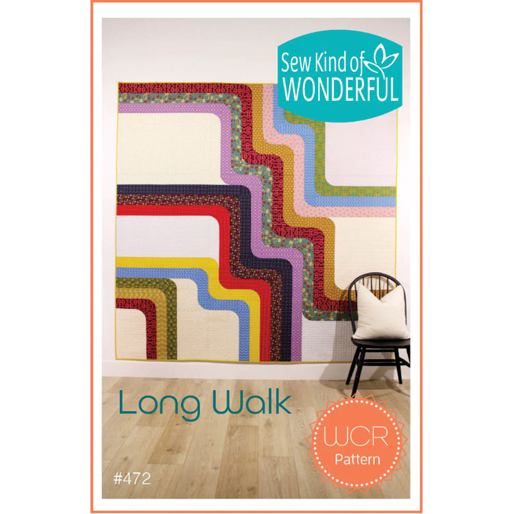 Designed by Helen Robinson, the Long Walk Quilt Pattern from Sew Kind of Wonderful has a modern style created with the Wonder Curve Ruler. This design is recommended for confident beginner sewists. The pattern includes instructions to create a 94" by 94" queen-sized quilt. The Long Walk Quilt Pattern has detailed instructions and a suggested list of materials.