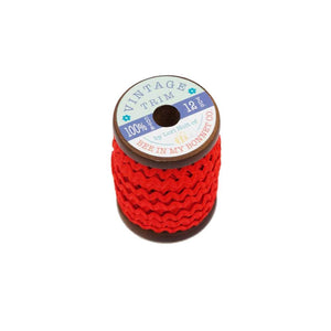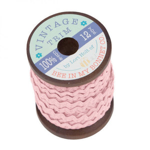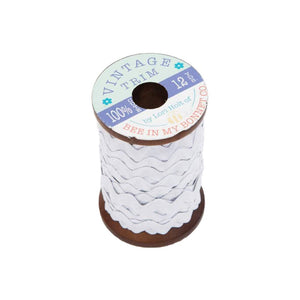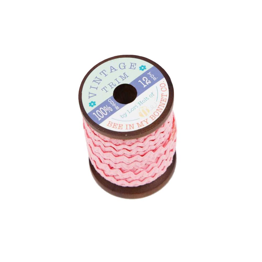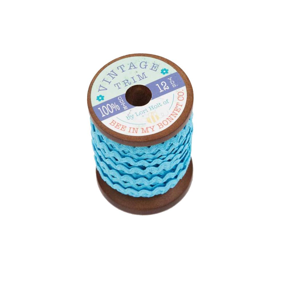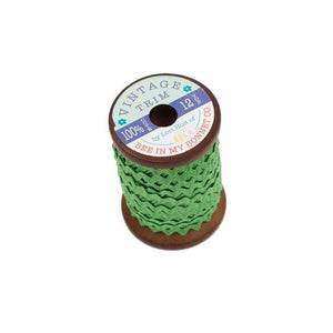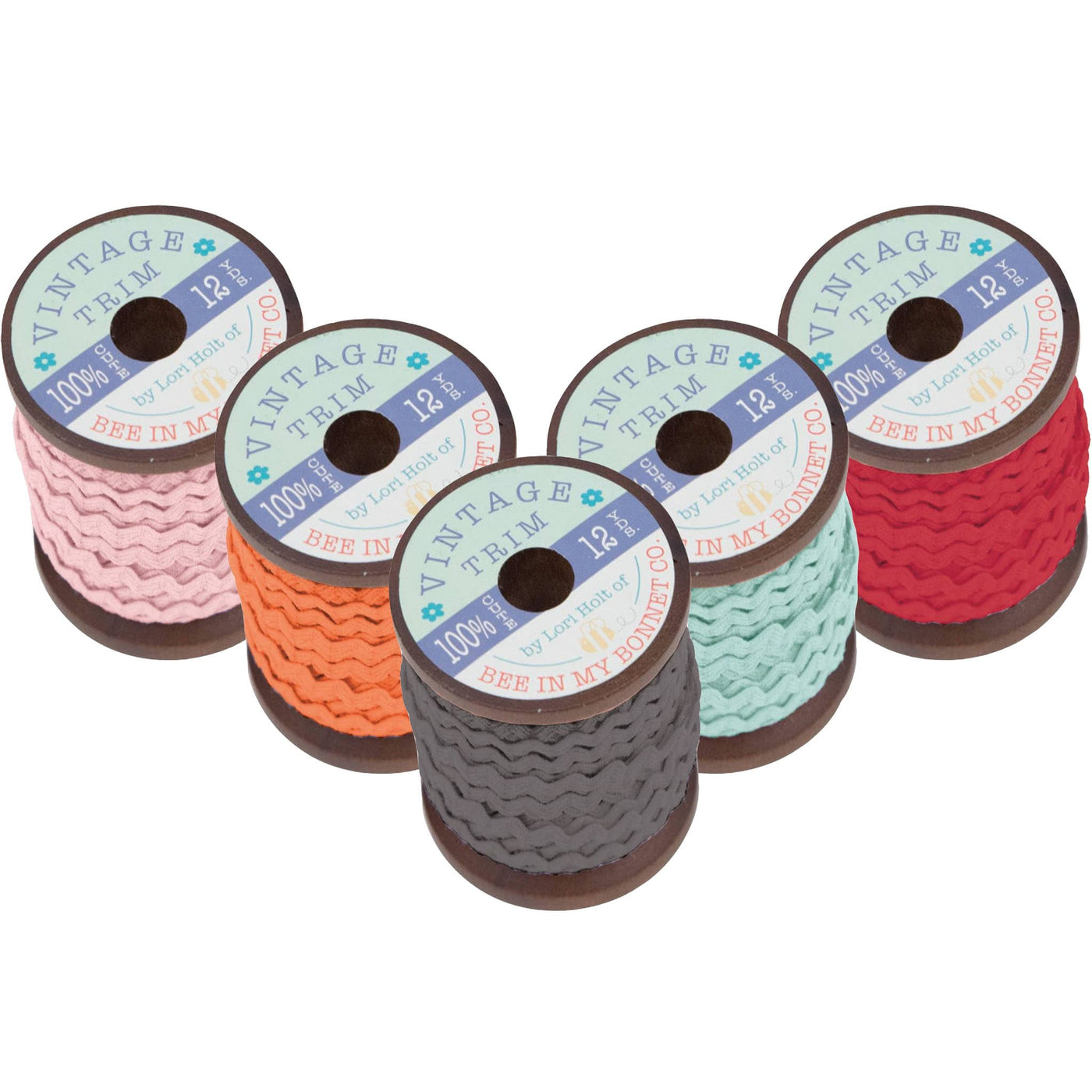 Embellish projects with Lori Holts Vintage Trim. These small spools of rick-rack come in 13 colors and are made using 100% polyester. Use this zig-zag trim on apparel, quilts, pillows, bows, stockings, crafts, and so much more. Each spool includes 12-yards of 1/4" ric-rac. Available colors: red, peony, green, aqua, nutmeg, beehive, cloud, cottage, songbird, frosting, pumpkin, jazzberry jam, and steel.