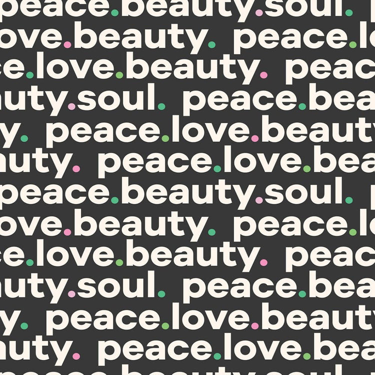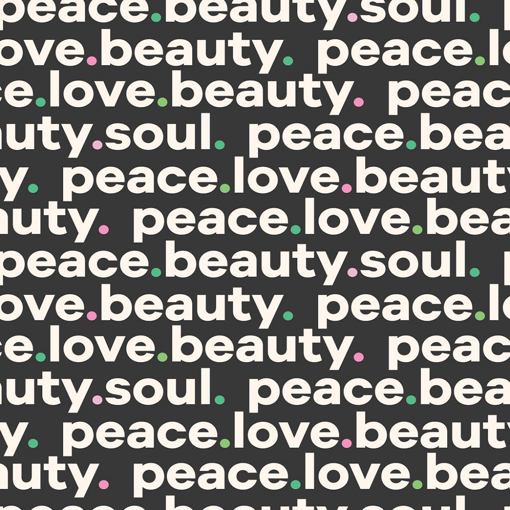 The Love, Peace and Beauty Font Fabric is printed by Sew Creative Fabrics. Digitally Printed on 100% cotton.