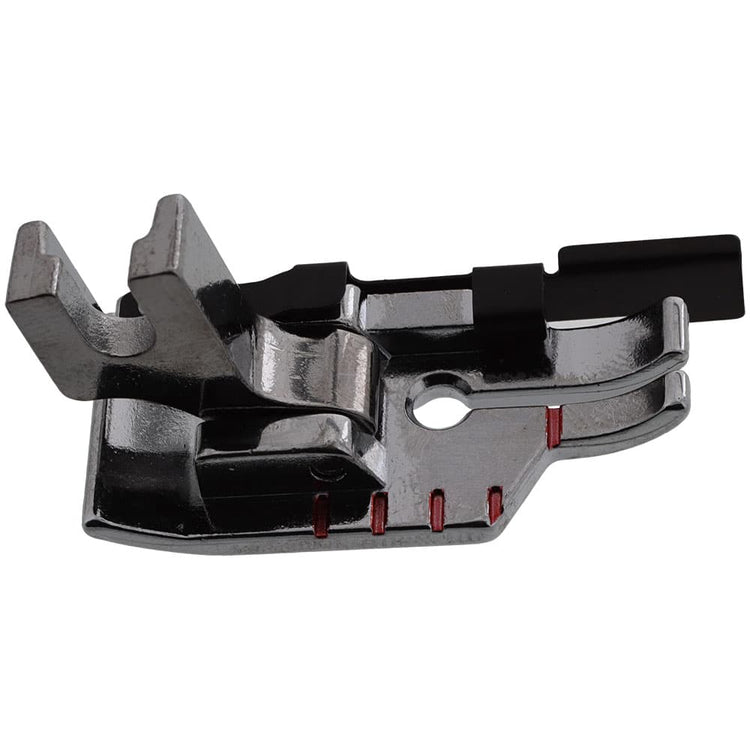 A popular foot with patchworkers for that essential 1/4 inch seam. The guide on the foot enables you to sew a perfect 1/4 inch seam every time. The guide can also be used wherever a 1/4 inch seam is called for but the markings on the needle plate cannot be used, such as when completing a flat seam.