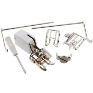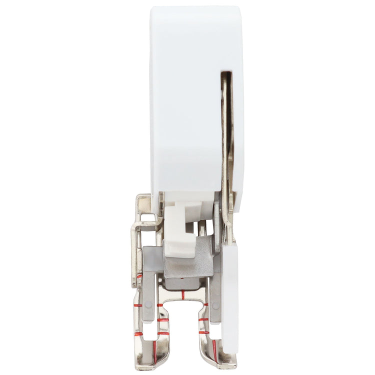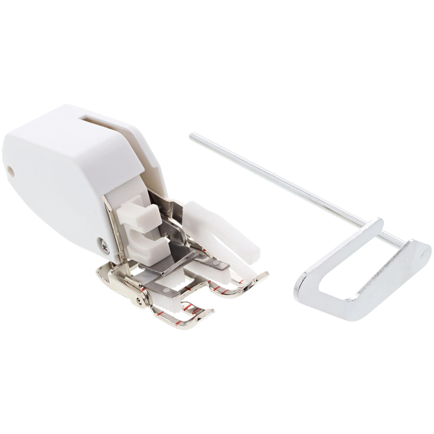 If you've ever struggled to feed your fabric through a sewing machine, you need a Walking Foot. Also known as a "Dual Feed Foot" and "Even Feed Foot", the Walking Foot is an essential tool for any sewer. This foot has built-in grips that hold your fabric for better control. Sewing multiple layers of fabric professionally and with ease. To use this foot on Elna 5000, 6000, 7000 (with a grey lifter lever), you must change to white lifter lever #461201-10. Please note that your walking foot may or may not come with a white cover on the presser foot lever (the "fork" that rests on the needle bar). This in no way affects the functionality of the foot.