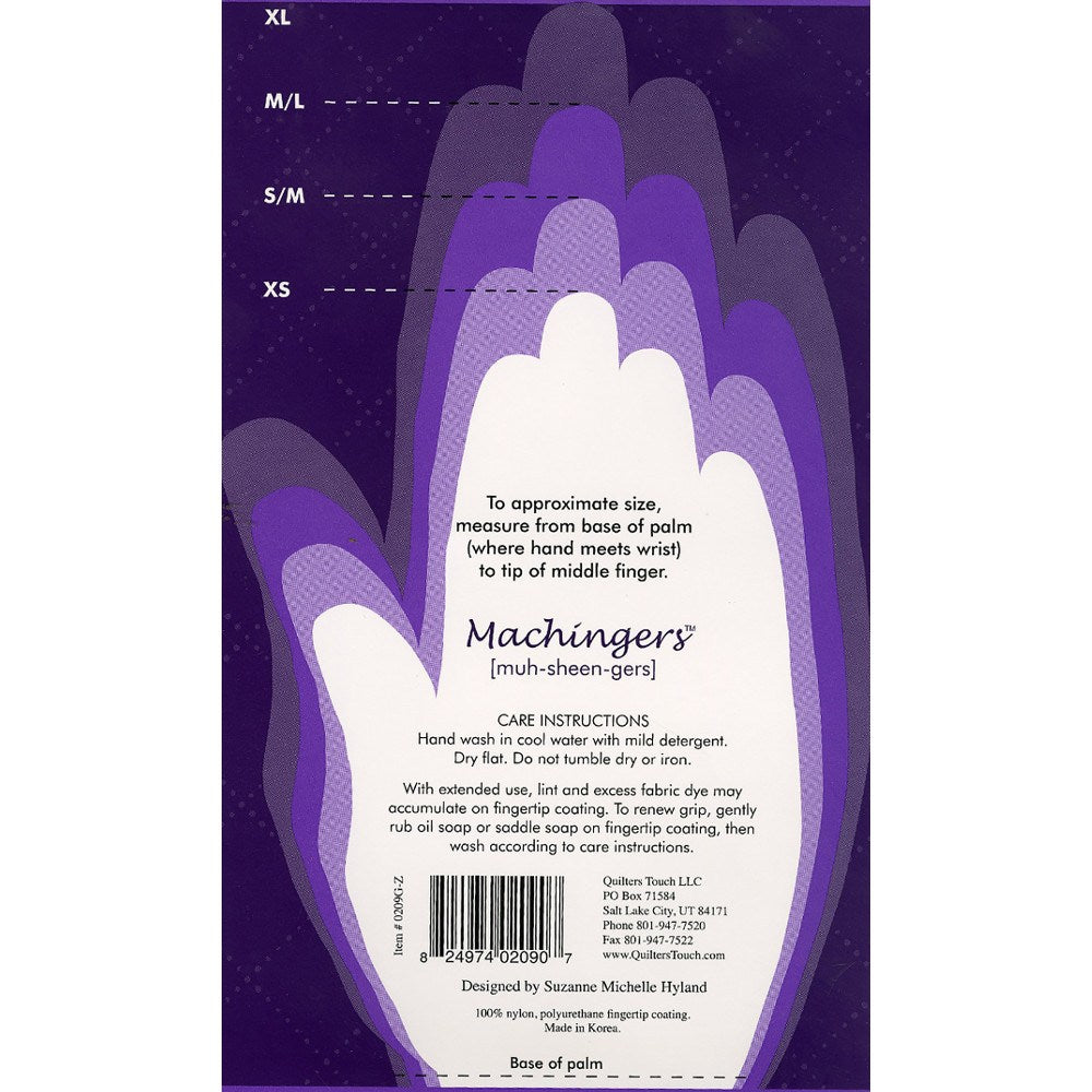 Machingers Quilting Gloves are a must-have tool for free motion quilters. These form-fitting gloves are equipped with flexible grippers on the fingertips. With Machingers Quilting Gloves you have full control of fabric with less resistance. These comfortable gloves do not have to be removed when changing threads, removing pins, or adjusting fabrics. Machingers Quilting Gloves are made from a breathable material; providing hours of quilting with less strain on the hands, arms, and neck.