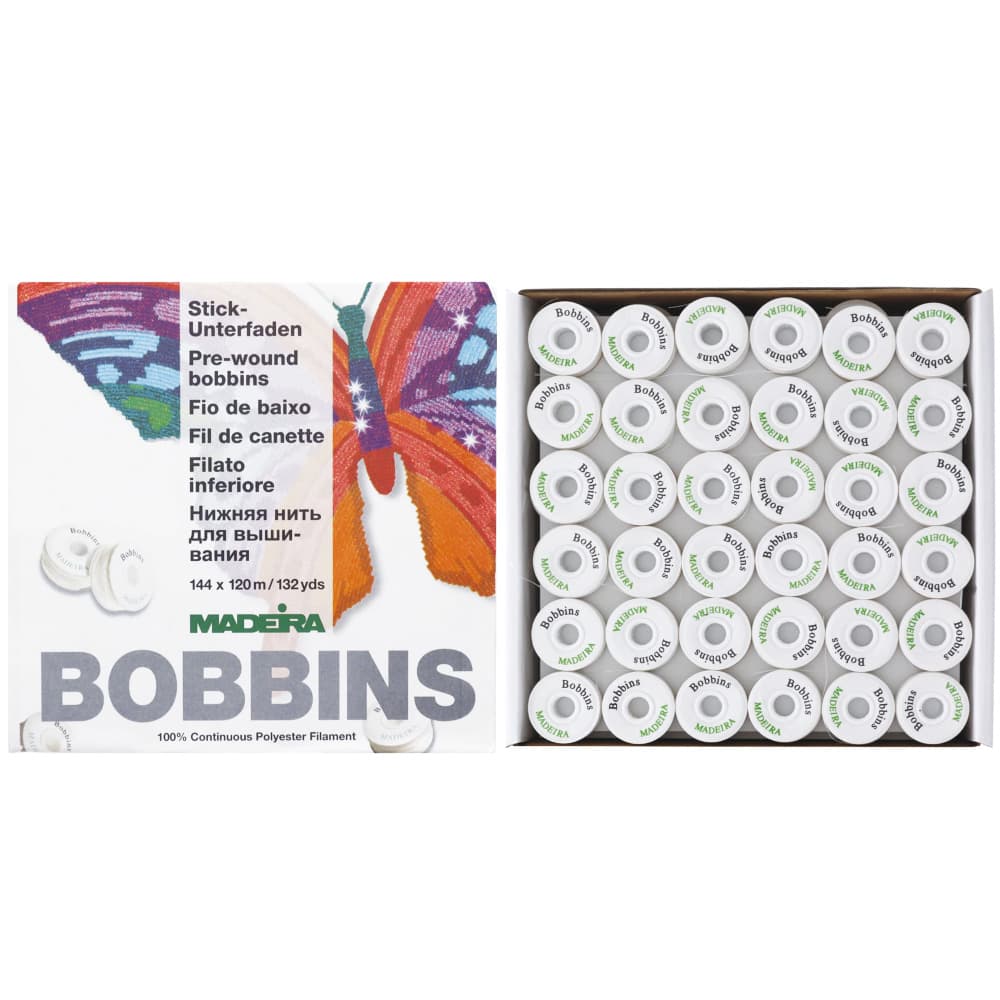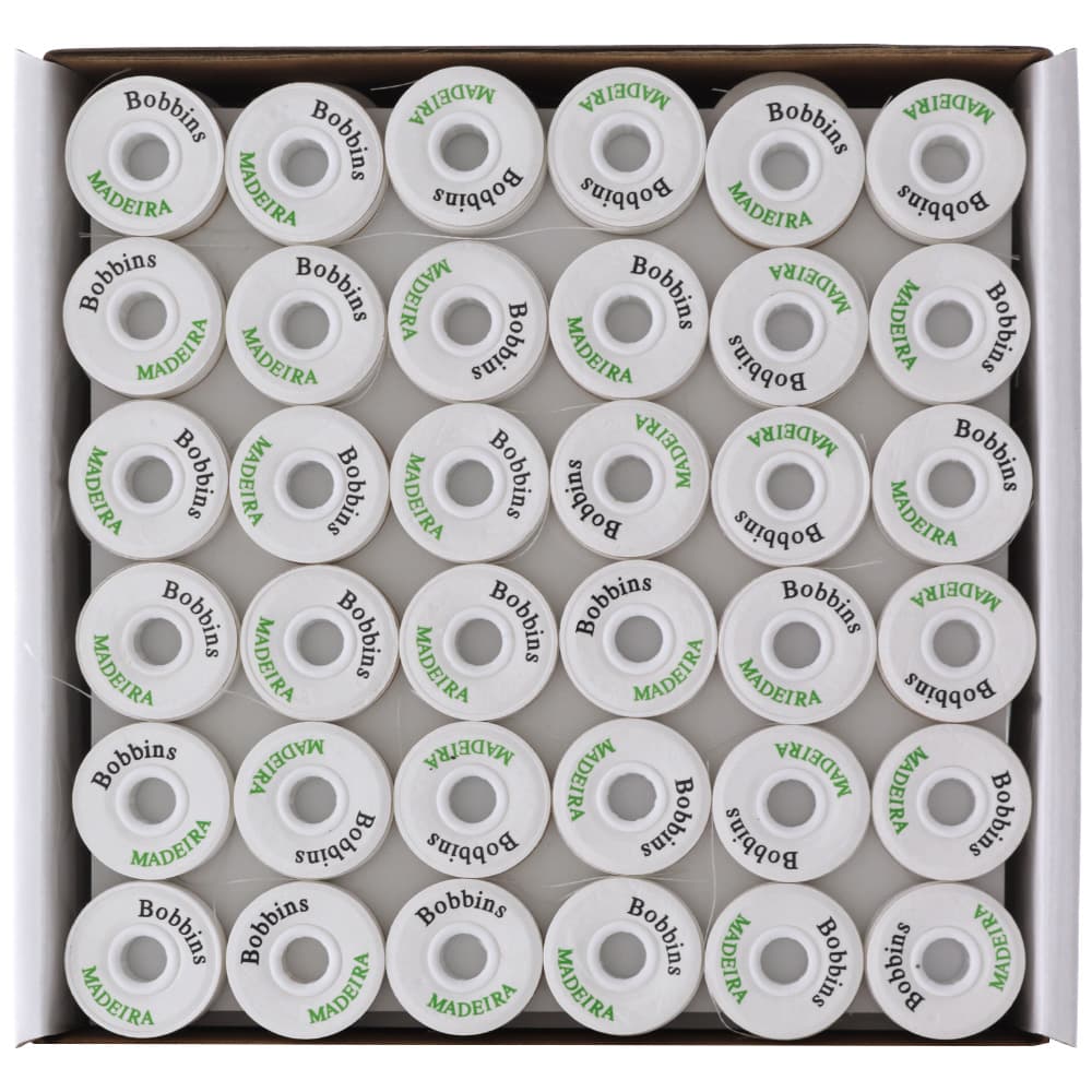Madeira Prewound L Style Bobbins 144-pk (132yds) - White Details