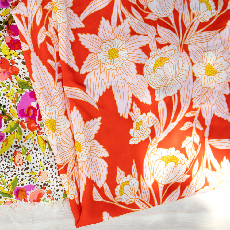 Crafted from 100% rayon and measuring approximately 54" wide, Madison Avenue Blaze offers a luxurious drape and soft hand that makes it ideal for apparel sewing—think flowy blouses, dreamy dresses, and statement skirts. Rayon's natural breathability and silky texture give garments beautiful movement and a comfortable, lightweight feel, while still holding vivid color brilliantly. Whether you're stitching up vintage-inspired wearables or a chic scarf for spring, this fabric delivers both flair and function.