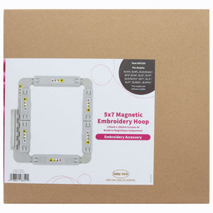 Babylock's Magnetic Frame is the perfect accessory for embroidering on single-needle machines. The magnets make repositioning your fabric for multiple hooping uncomplicated. It is a must-have for quilting or large embroidery designs! This 5" x 7" hoop slides easily into the module of your Baby Lock machine.