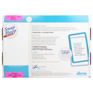 The Snap Hoop Monster comes with a flat magnetic top and metal bottom frame that includes a machine attachment recognizable by your embroidery machine. Effortlessly execute flawless, continuous embroidery when stitching quilts, towels, etc. The Snap Hoop Monster is available in multiple hoop sizes!
