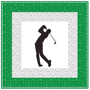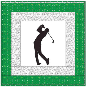 The Male Golfer Wall Hanging includes everything that you need to make the quilt - the instructions and a total of 3 1/2 yards of fabric and a 23" panel. It has two borders and is finished with a flange binding. Batting is sold separately. The finished size of this quilt is 42" x 42".
