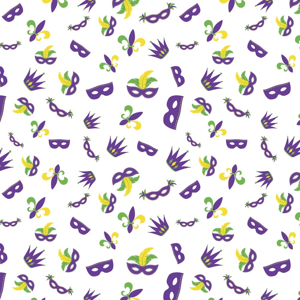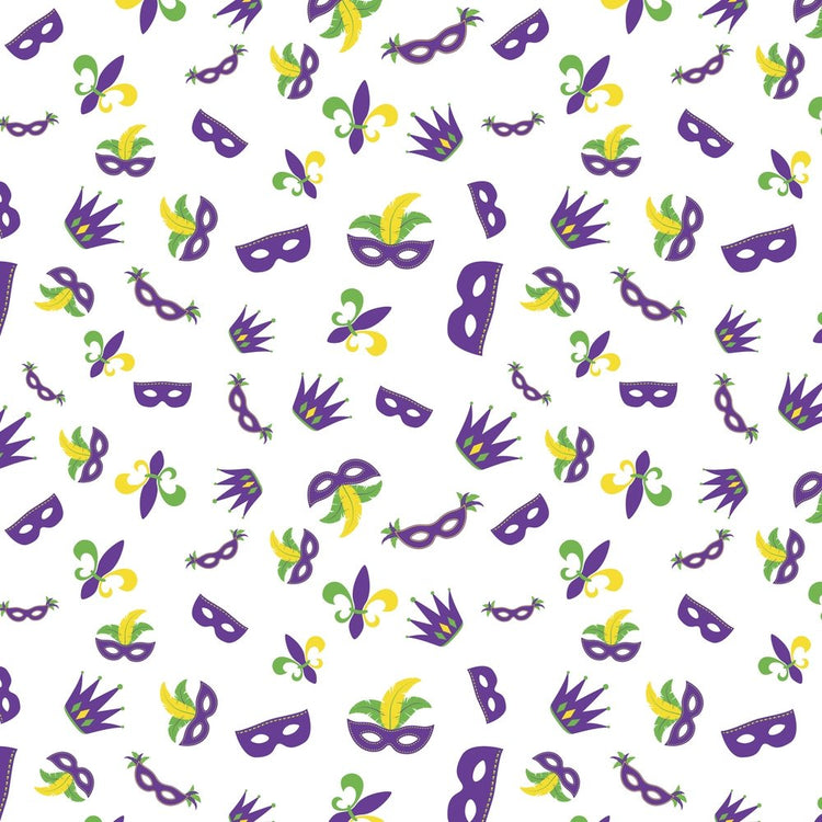 The Mardi Gras Decorations Fabric is part of the Mardi Gras Fabric Collection printed by Sew Creative Fabrics. Digitally Printed on 100% cotton.