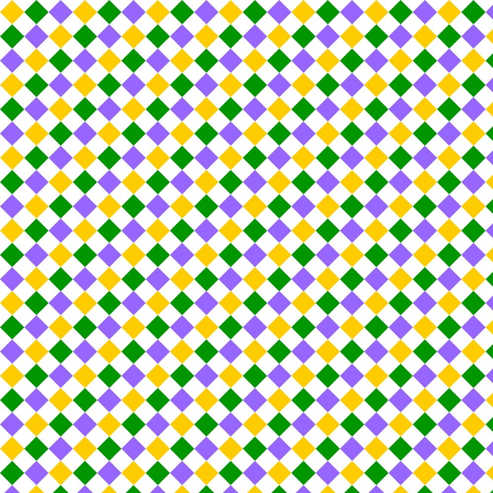 The Mardi Gras Diamond Fabric is part of the Mardi Gras Fabric Collection printed by Sew Creative Fabrics. Digitally Printed on 100% cotton.