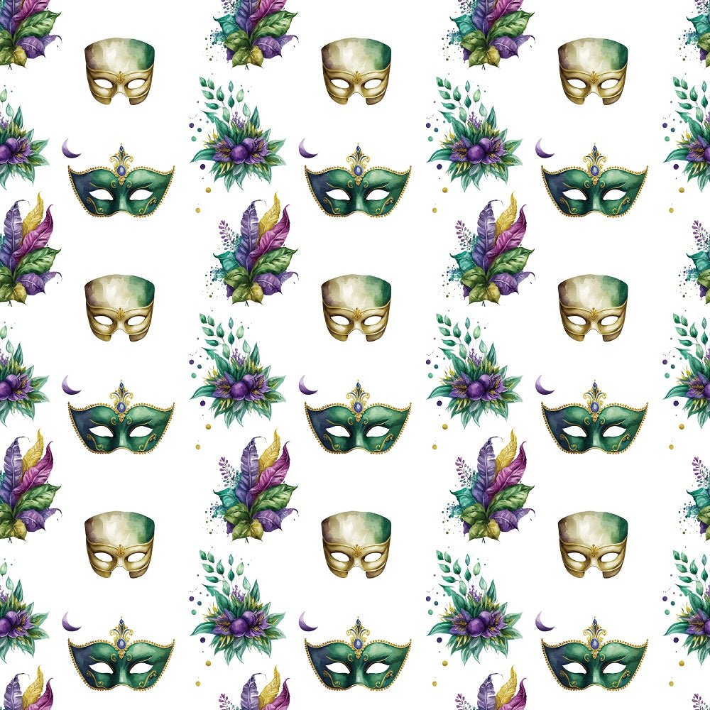 The Mardi Gras Elements 1 Fabric is part of the Watercolor Mardi Gras Fabric Collection printed by Sew Creative Fabrics. Digitally Printed on 100% cotton.