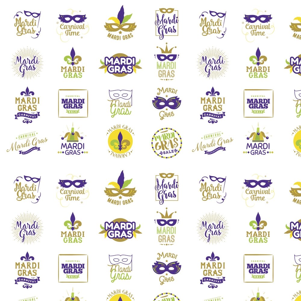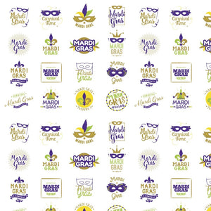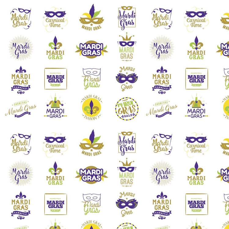 The Mardi Gras Signs Fabric is part of the Mardi Gras Fabric Collection printed by Sew Creative Fabrics. Digitally Printed on 100% cotton.