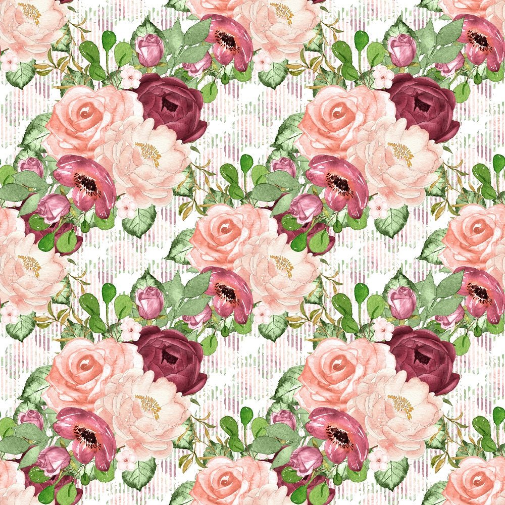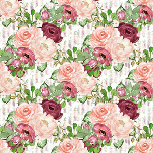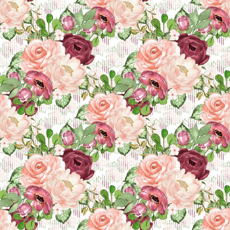 The Marsala Bouquets on Stripes Fabric is part of the Marsala Fabric Collection printed by Sew Creative Fabrics. Digitally Printed on 100% cotton and measures 43-45" wide.